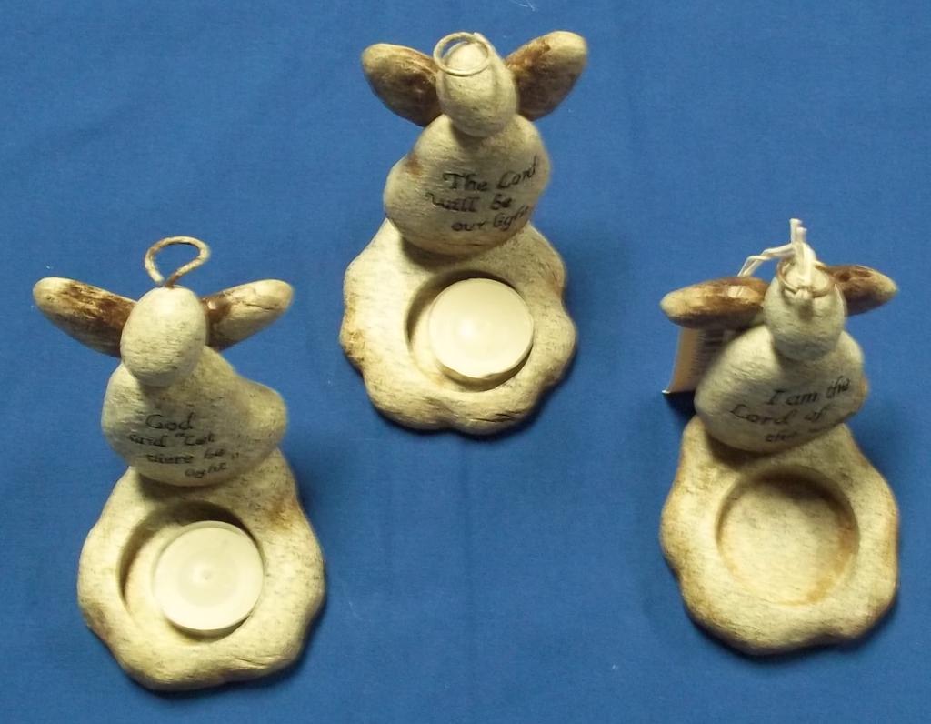 Lot- 3 Stone Angel Candle Holders w/ Sayings