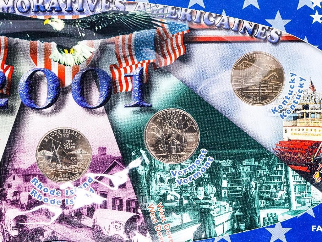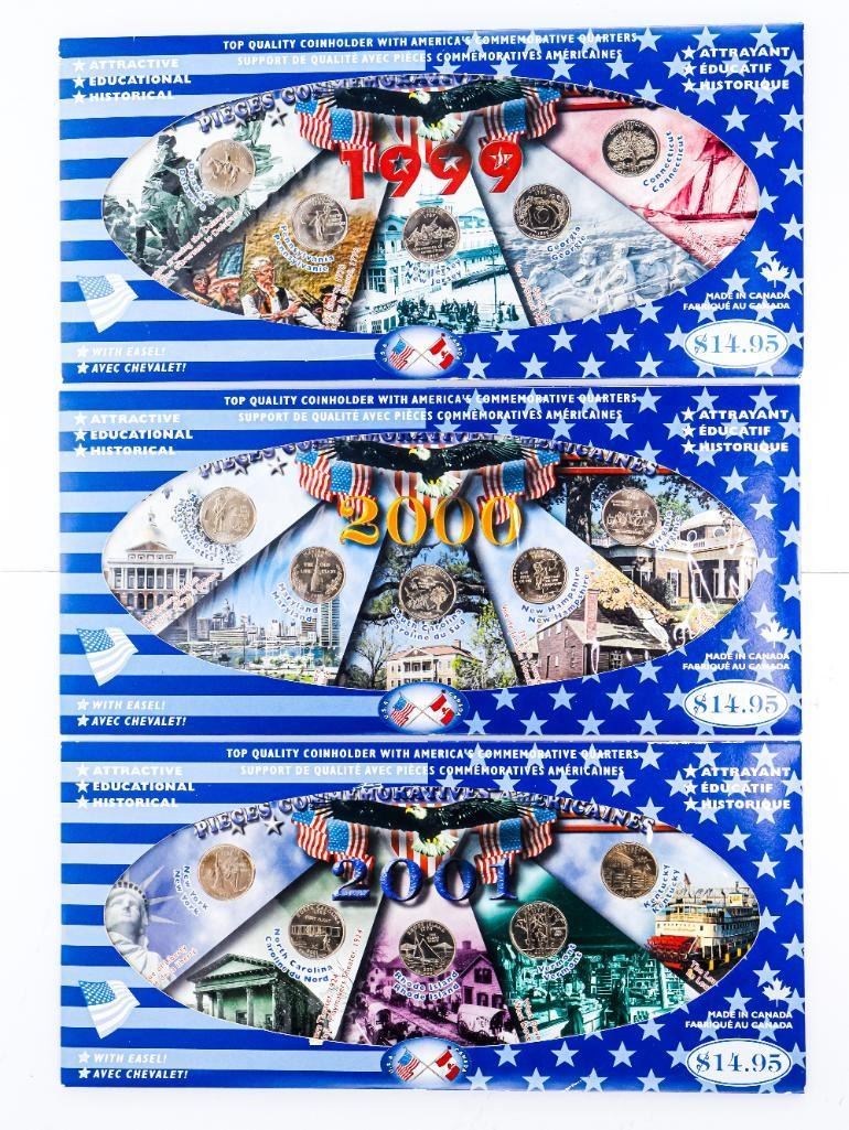Lot 3 USA Commemorative Quarters - 1999-2000-2001 on Easel Back Displays -Price $14.95 EA USD-1006547