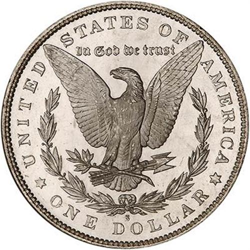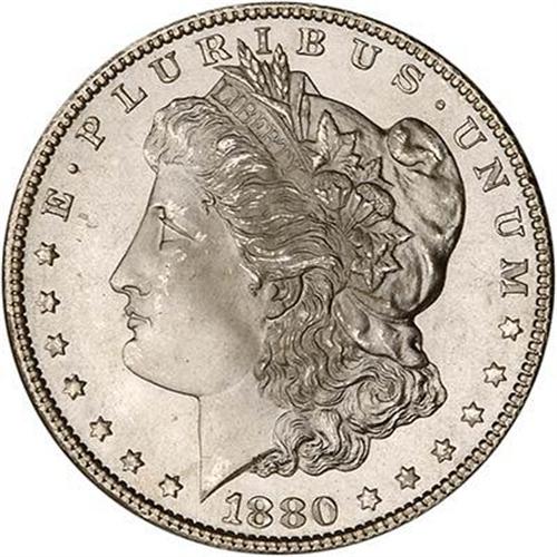 1880-S Morgan Dollar. Devices were struck with energy and full oomph by the dies imparting all design elements boldly. Switching next to the surfaces, we see they have a bright, metallic, satin-like sheen. Everything is superb! (#7118)