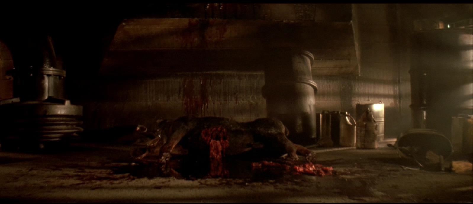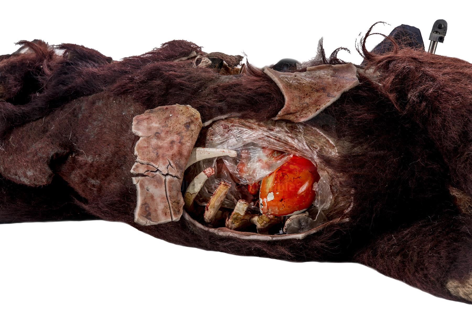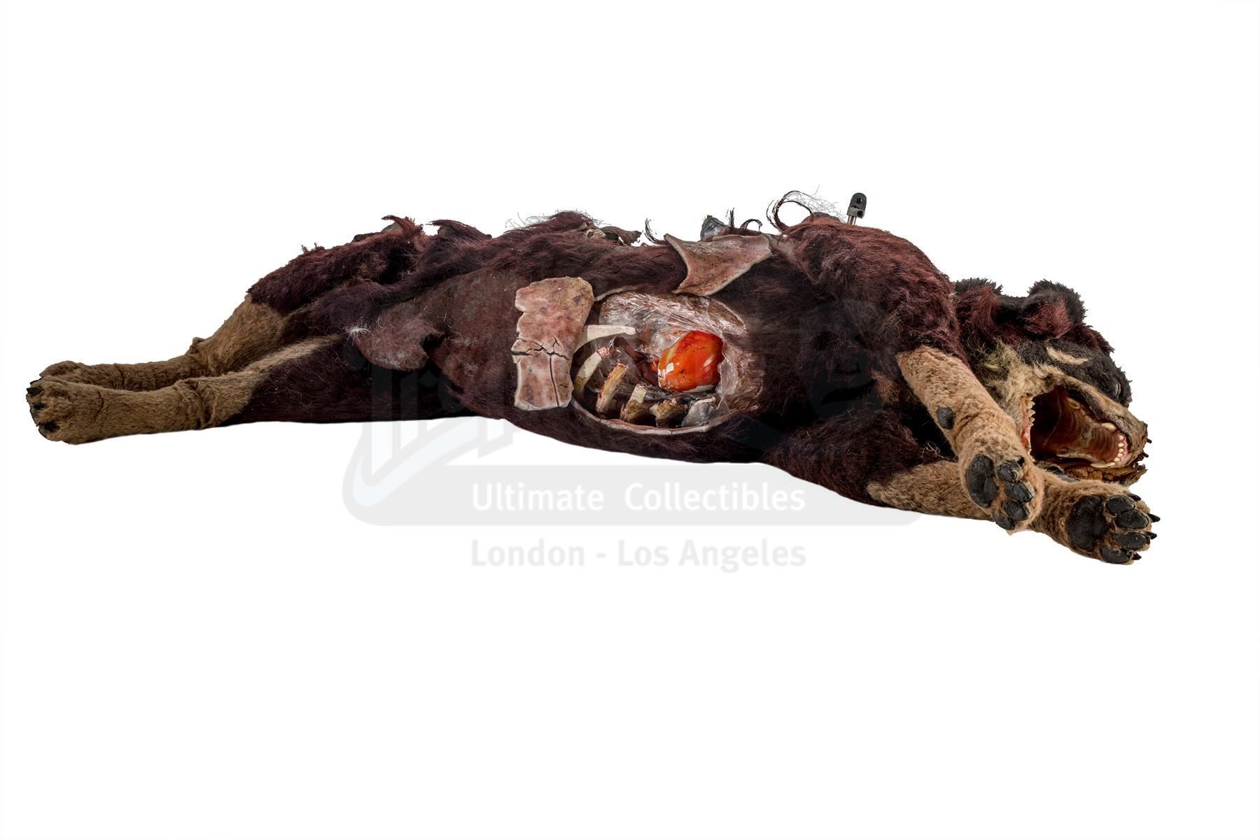 A dog puppet with a Dogburster alien from David Fincher's sci-fi action-horror sequel Alien3. When Ellen Ripley (Sigourney Weaver) crash landed on Fiorina 161, an alien Facehugger which was on board her pod attached itself to a dog, impregnating it with an alien that burst through its stomach.