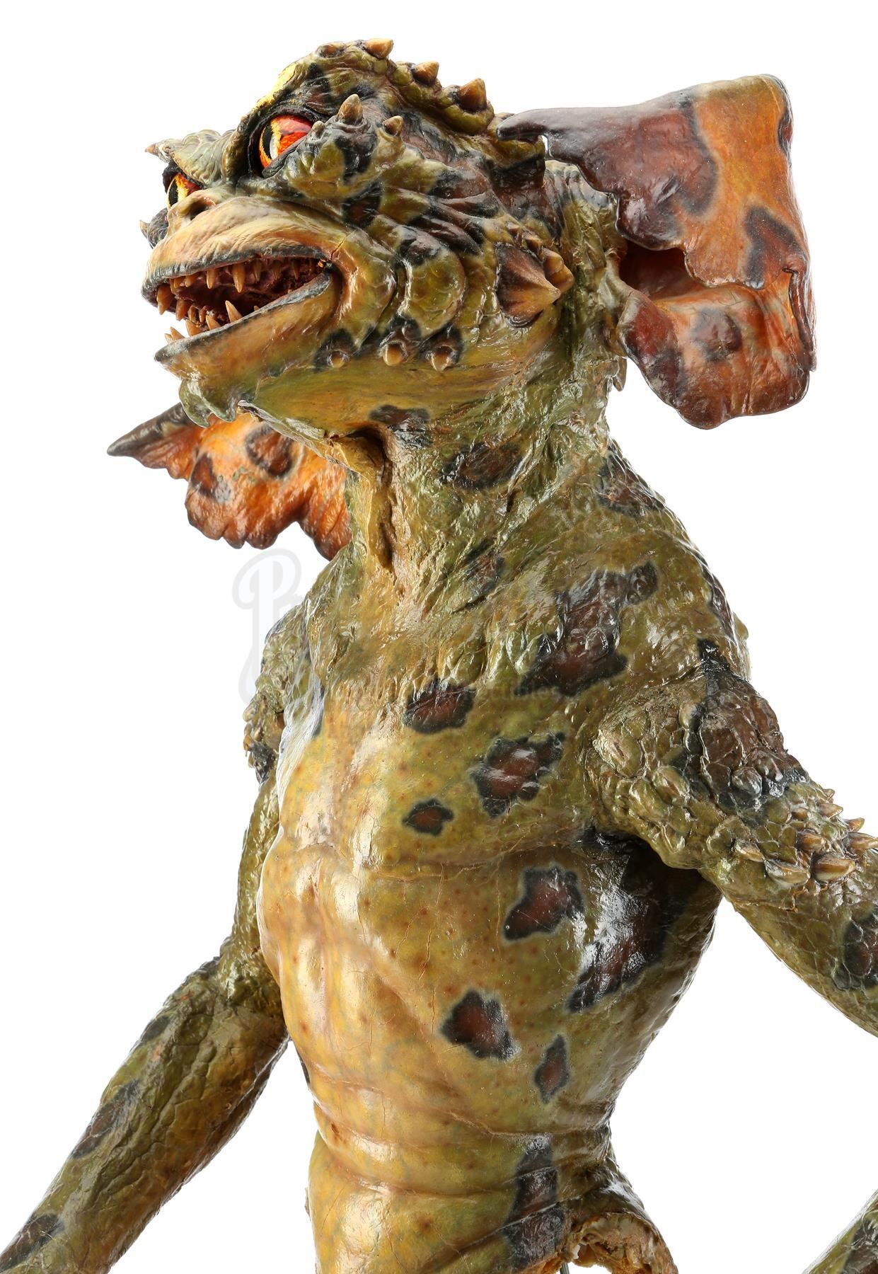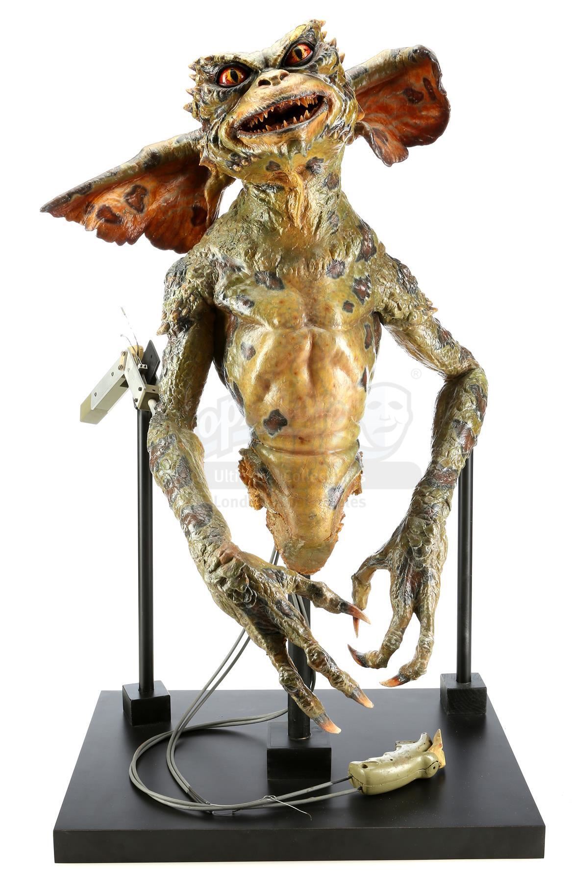 A green gremlin puppet from Joe Dante's comedy horror sequel Gremlins 2: The New Batch. A horde of vile gremlins wreaked havoc on those trapped in New York's Clamp Center. Created by special effects artist Rick Baker and his team, this puppet was used in scenes in which the upper body of the gremlin was prominently featured and needed to include head and facial movement.