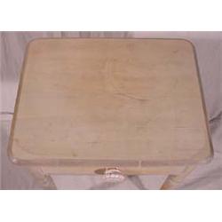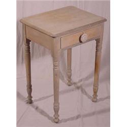 Nice old pine stand, painted with a gray wash, turned legs and button feet. This American made stand is in nice sturdy condition. Ca. 1860. Est. $100 - $200.