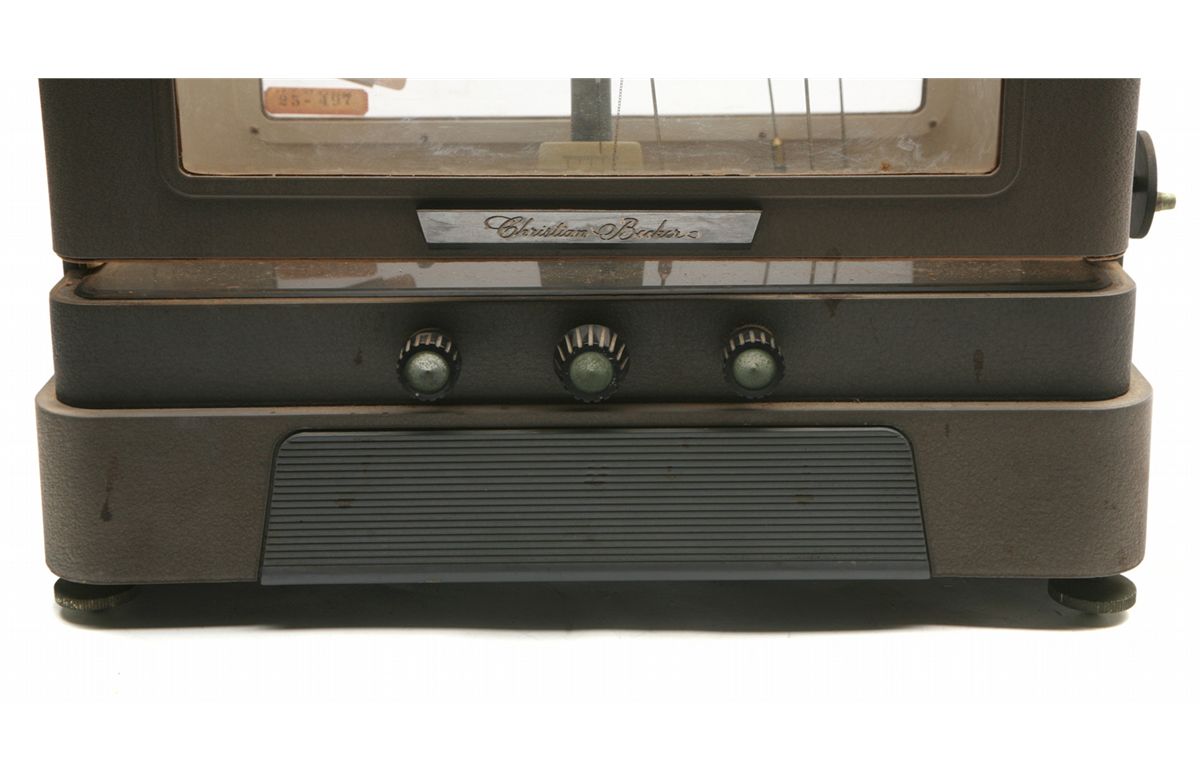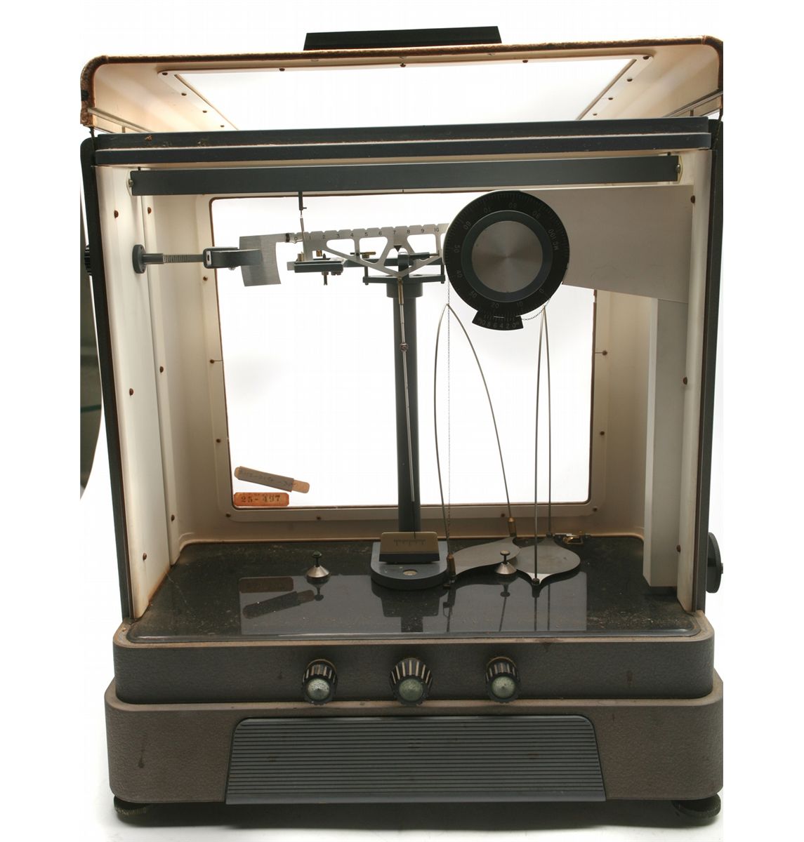 Vintage Christian Becker 200 gram beam scale - 17"x20"x9" - door tension knob - with center drawer - instruction sheet - frosted glass rear panel & glass front panel - non-ffl - 25JJJCEKS002