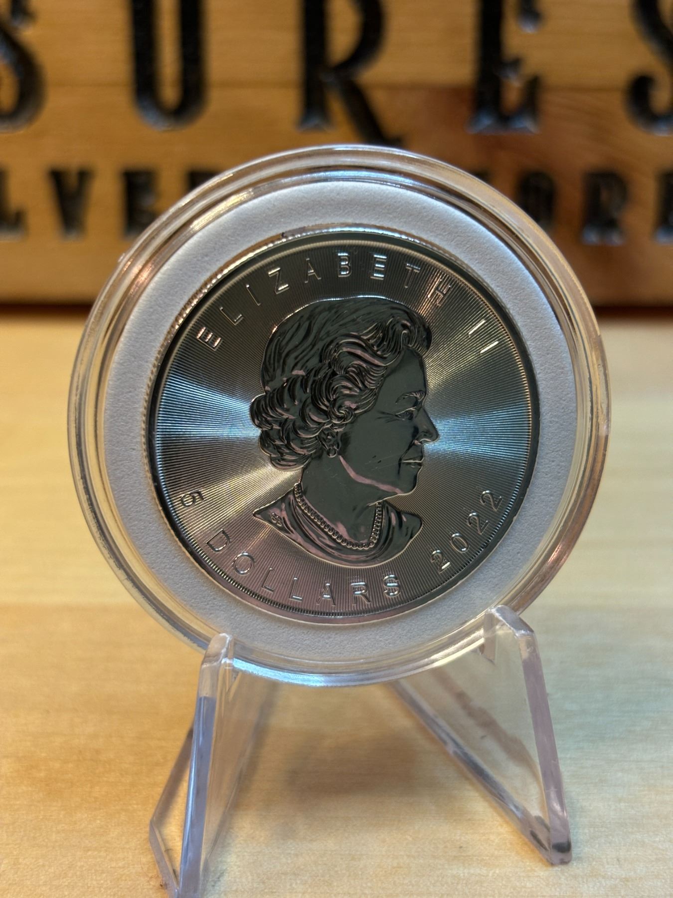 The 2022 1 oz Canadian Silver Maple Leaf is a .9999 fine silver coin featuring King Charles III on the obverse and the iconic maple leaf on the reverse. With advanced security features and MINTSHIELD™ protection, it’s perfect for collectors and investors.