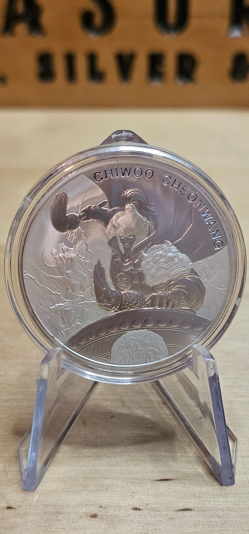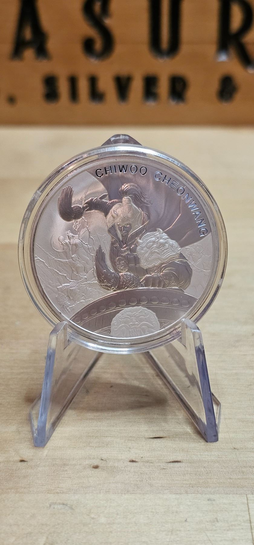 The 2021 1 oz Silver Chiwoo Cheonwang coin, produced by KOMSCO, features the legendary figure Chiwoo Cheonwang, a symbol of protection and victory in Korean history. Struck from 99.9% pure silver, this coin showcases exquisite detailing and artistry, highlighting the warrior's distinctive armor and dynamic pose. With its limited mintage and cultural significance, it appeals to both collectors and investors, making it a standout piece in any silver collection.