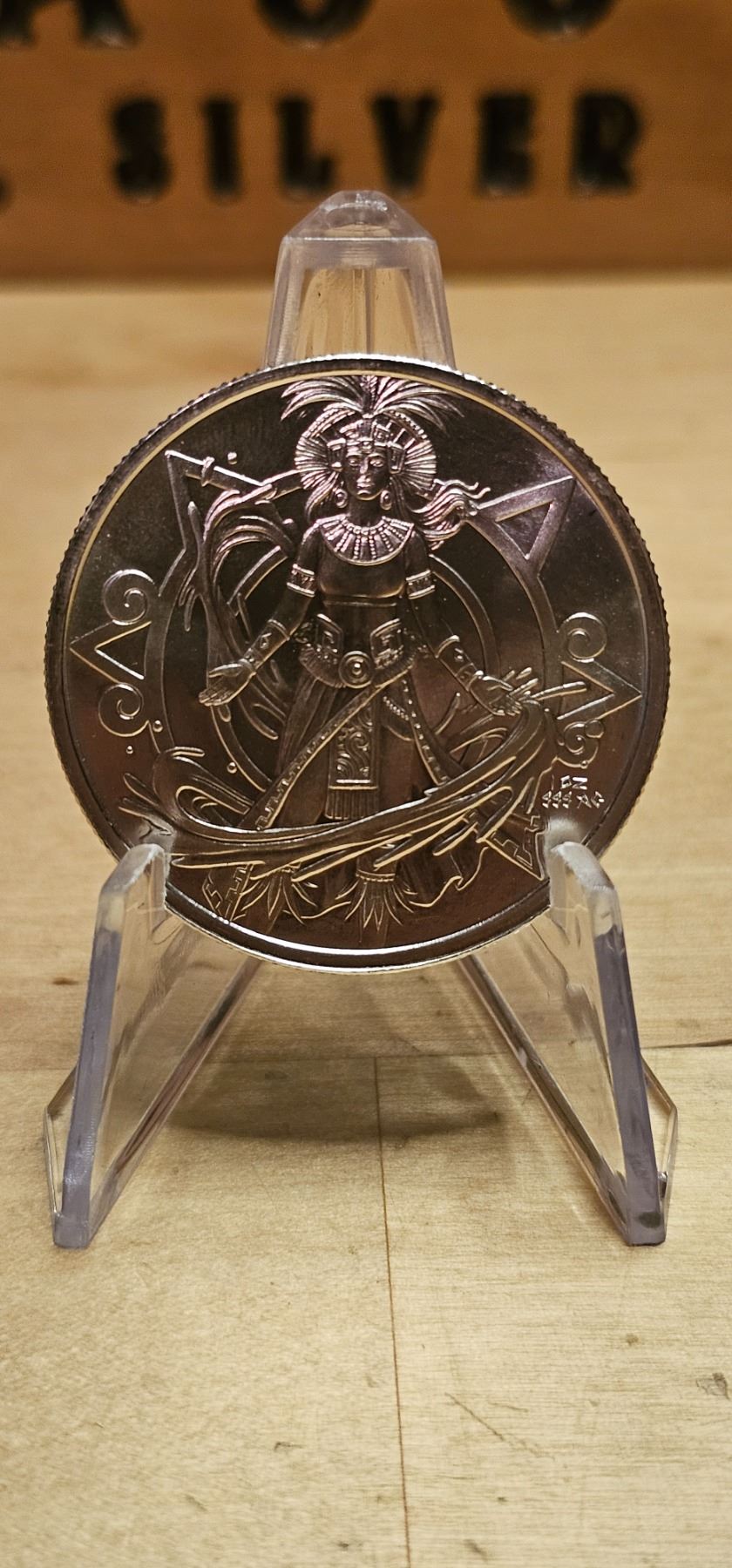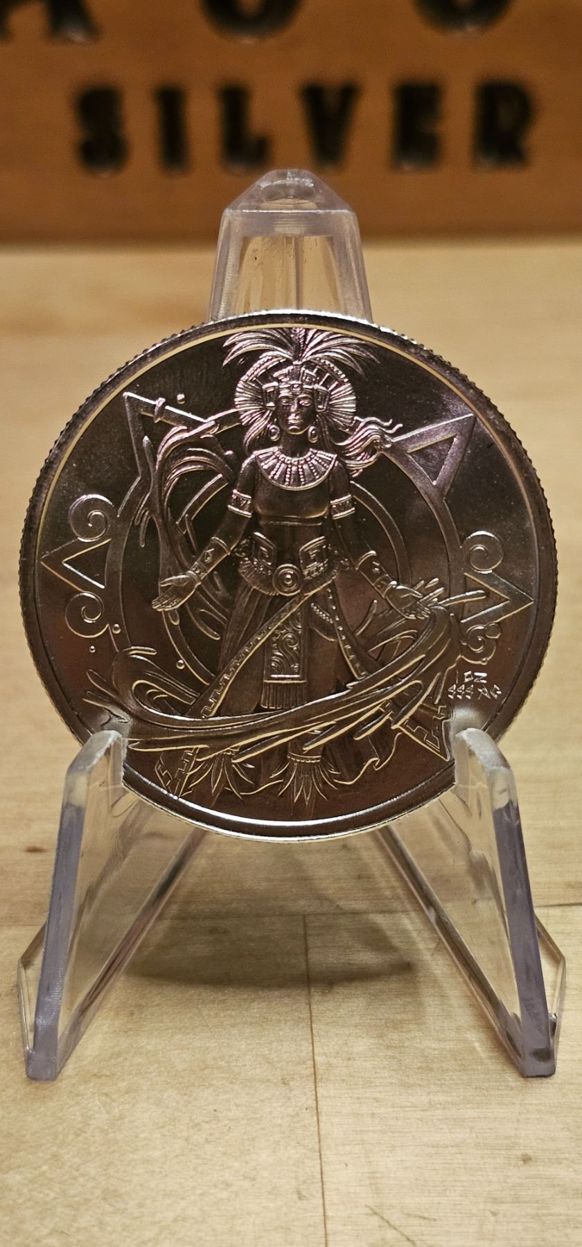 The 1 oz Silver Round Aztec Water Deity is a beautifully designed piece honoring ancient Aztec culture. Struck in .999 fine silver, the round features a detailed depiction of Tlāloc, the Aztec water and rain deity, surrounded by intricate Mesoamerican patterns. The reverse typically showcases the Aztec Sun Stone (Calendar), symbolizing the civilization’s rich heritage. This silver round is a captivating collectible for those interested in history, mythology, and precious metals.