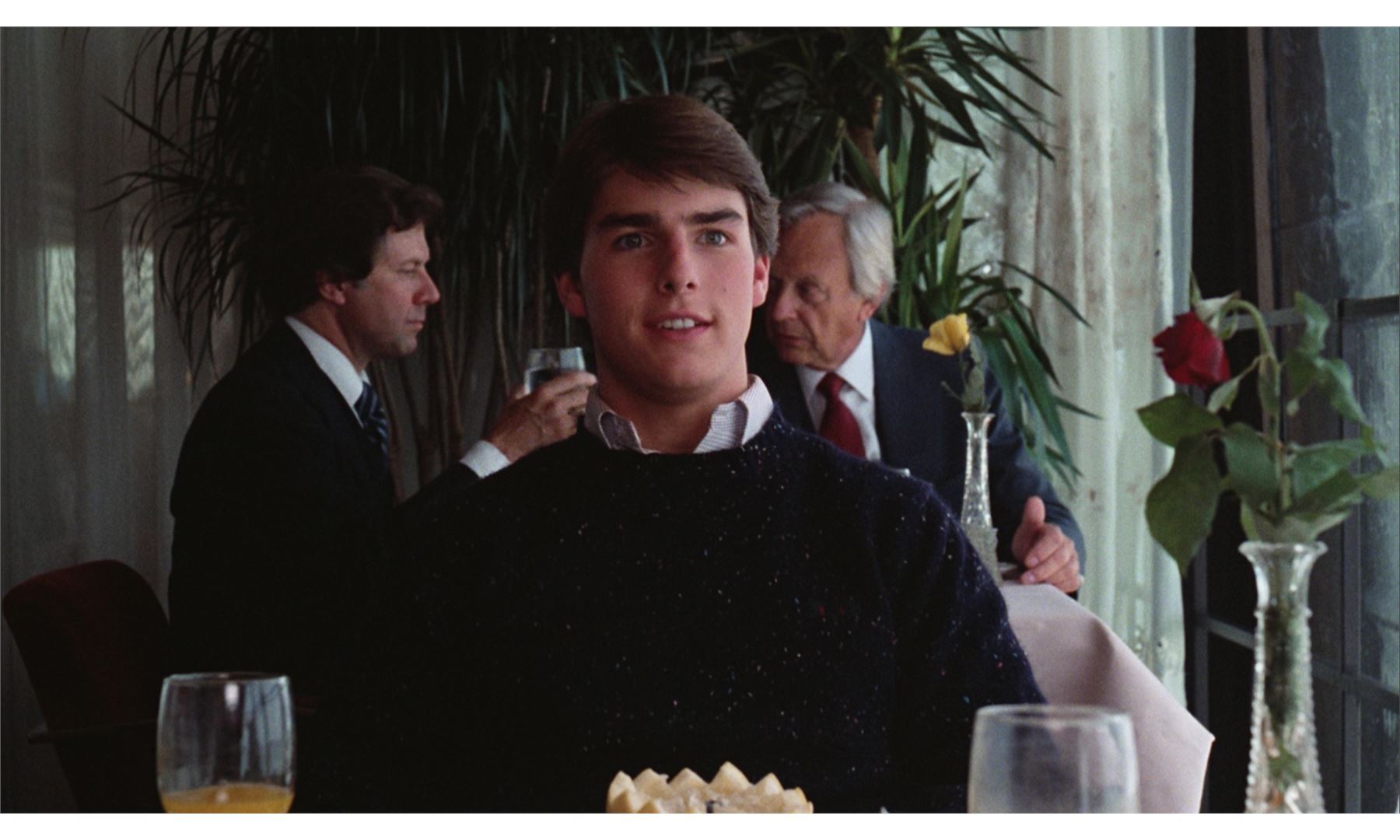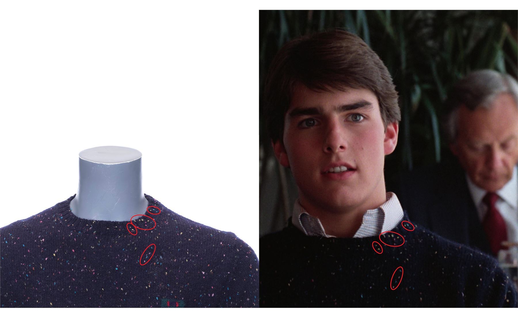 RISKY BUSINESS (1983) - Joel Goodsen's (Tom Cruise) Screen-Matched Sweater - Joel Goodsen's (Tom Cruise) screen-matched sweater from Paul Brickman's comedy-drama film Risky Business. The imperfections in speckled design along the collar screen-match this sweater to the one Goodsen wore during dinner with Lana (Rebecca De Mornay).