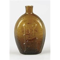 Lot #336 SUCCESS TO THE RAILROAD. (GV-5) American. Medium amber pint, pontil mark, sheered mouth. CONDITION: Shallow 3/8” lip chip. 9-97568-22 ~(150-175)