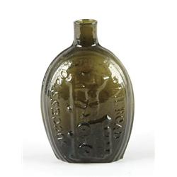 Lot #337 SUCCESS TO THE RAILROAD. (GV-3) American. Olive green pint, pontil mark, sheered mouth. CONDITION: Pot stone midway next to the medial rib, with radiations, longest being 1/4”. 9-97568-23 ~(125-175)