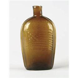 Lot #339 STODDARD FLAG. (GX-27) American. Amber pint, pontil mark, sheered mouth. CONDITION: It appears that the rim had a chip that was probably polished at the time of its making. This bottle has been in storage for 20+ years. Very small tiny flake on top of the edge of the lip. 9-97568-29 ~(5,000-7,000)