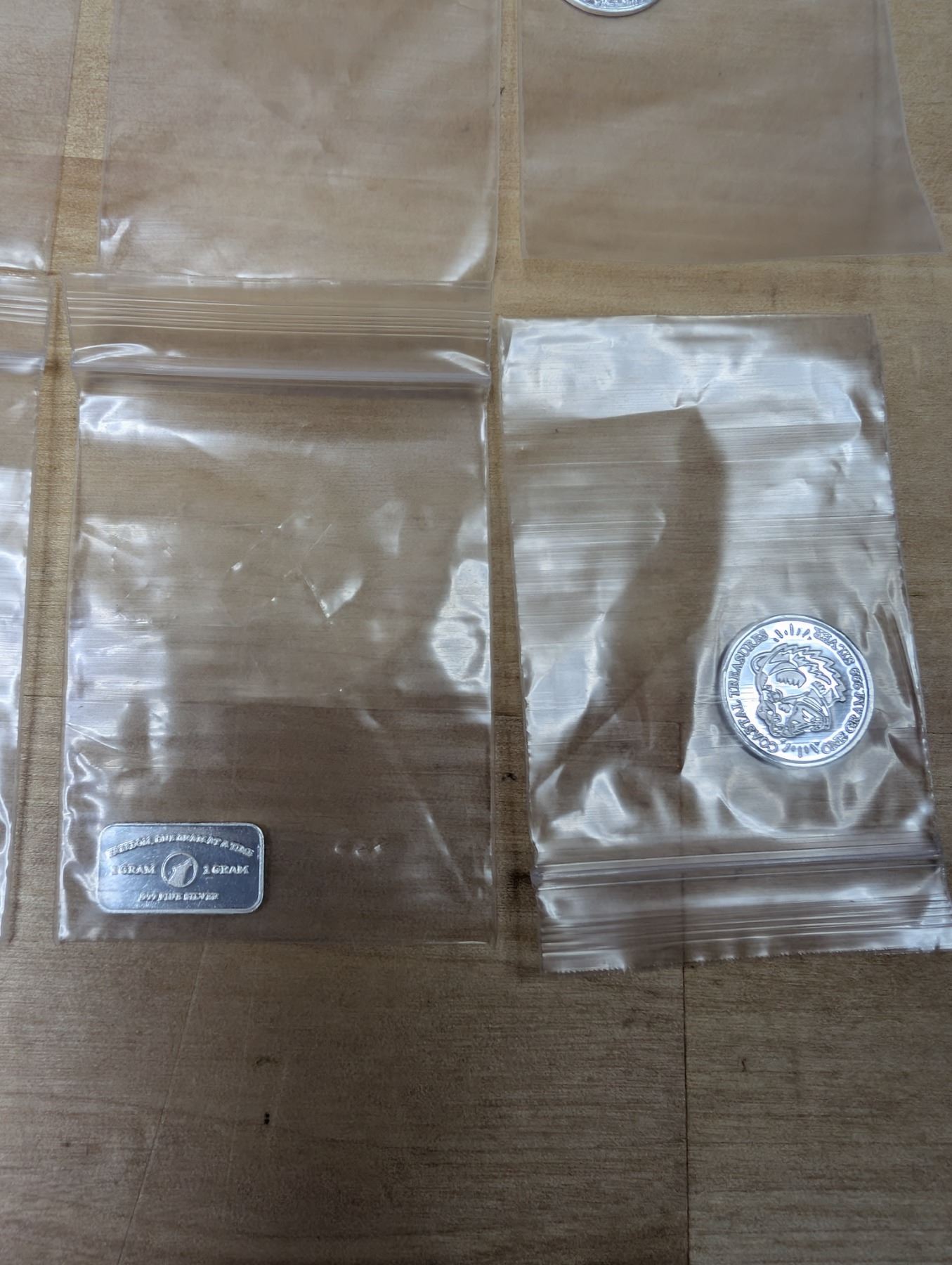 1g Silver Bar – A 1-gram silver bar produced by AMX, made of 99.9% pure silver.