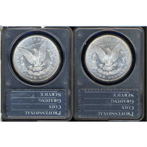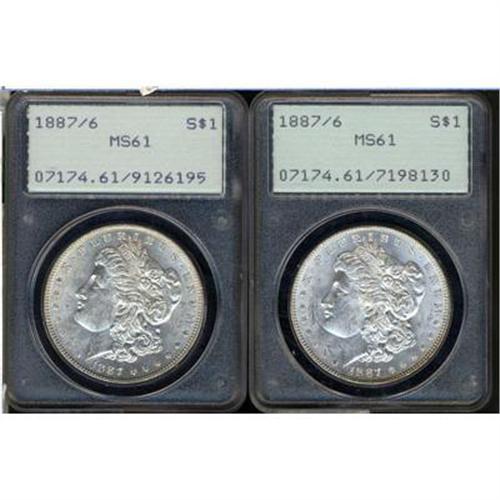 Lot 348 - Lot of Two 1887 Morgan Dollars. 7 over 6 PCGS MS61