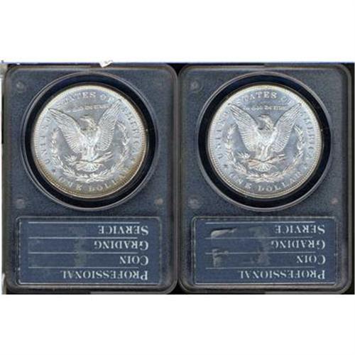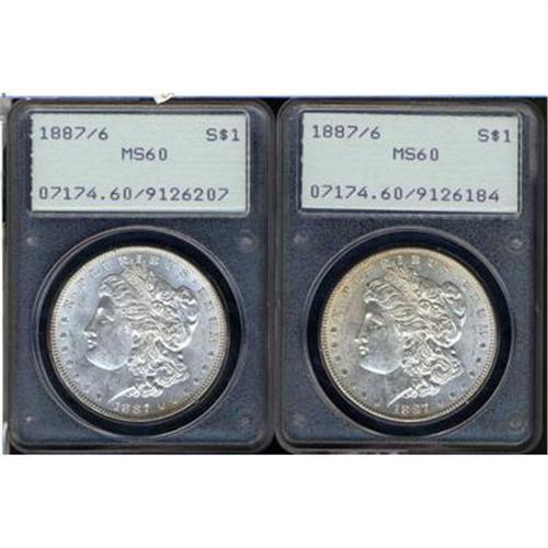 Lot 351 - Lot of Two 1887 Morgan Dollars. 7 over 6 PCGS MS60