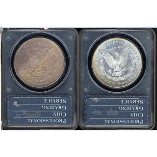 Lot 352 - Lot of Two Morgan Dollars 1887 7 over 6 PCGS MS60