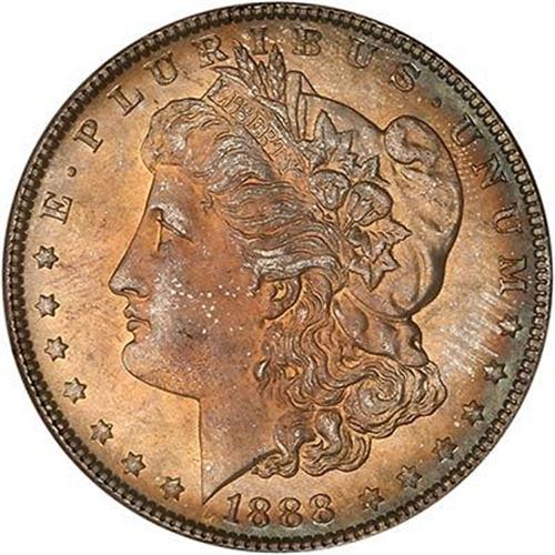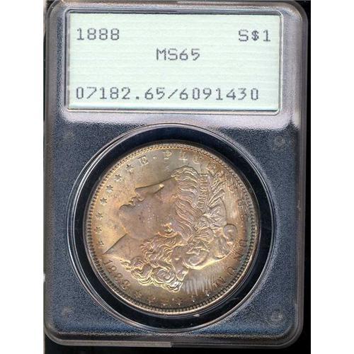 1888 Morgan Dollar. With a little careful searching you might just find another MS65 of this date with similar qualities and appearance, but why try? Marvelously toned. (#7182)