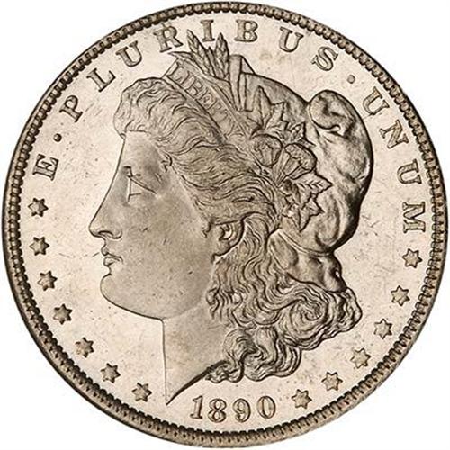 1890 Morgan Dollar. Lustrous frosty devices with contrasting deep reflective surfaces enhances the rich highlights. Nearly full hair and breast detail. A truly outstanding gem specimen of a fashionable Philly mint issue from our silver dollar era. These were struck under the auspices of the Coinage Act of 1890, which mandated that the mint purchase a certain number of ounces of silver for coinage into dollars. (#7196)