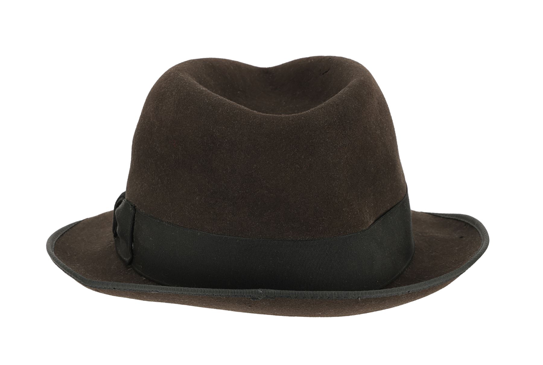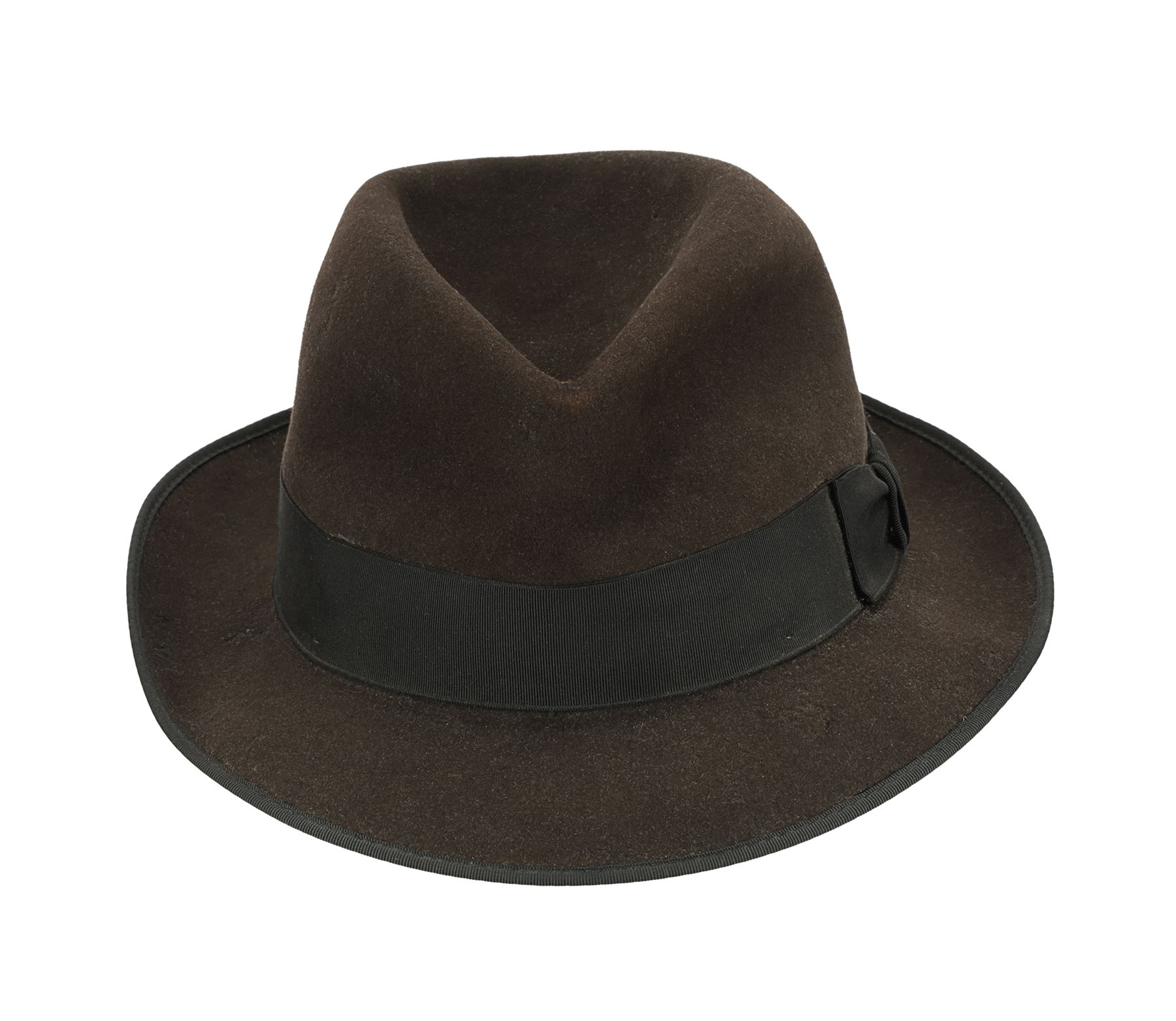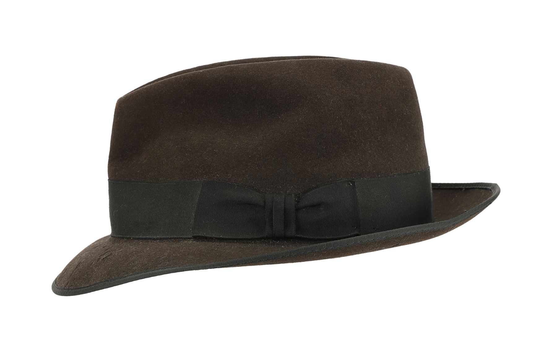Marty McFly's (Michael J. Fox) Stetson trilby from Robert Zemeckis' sci-fi sequel Back to the Future: Part II. One of only two made for the film, the trilby was worn by Marty throughout his return trip to 1985, while pursuing the stolen Grays Sports Almanac.