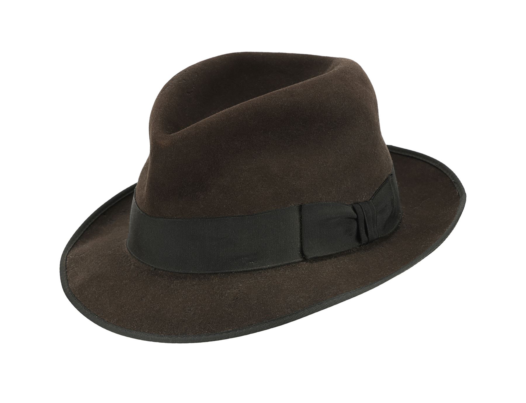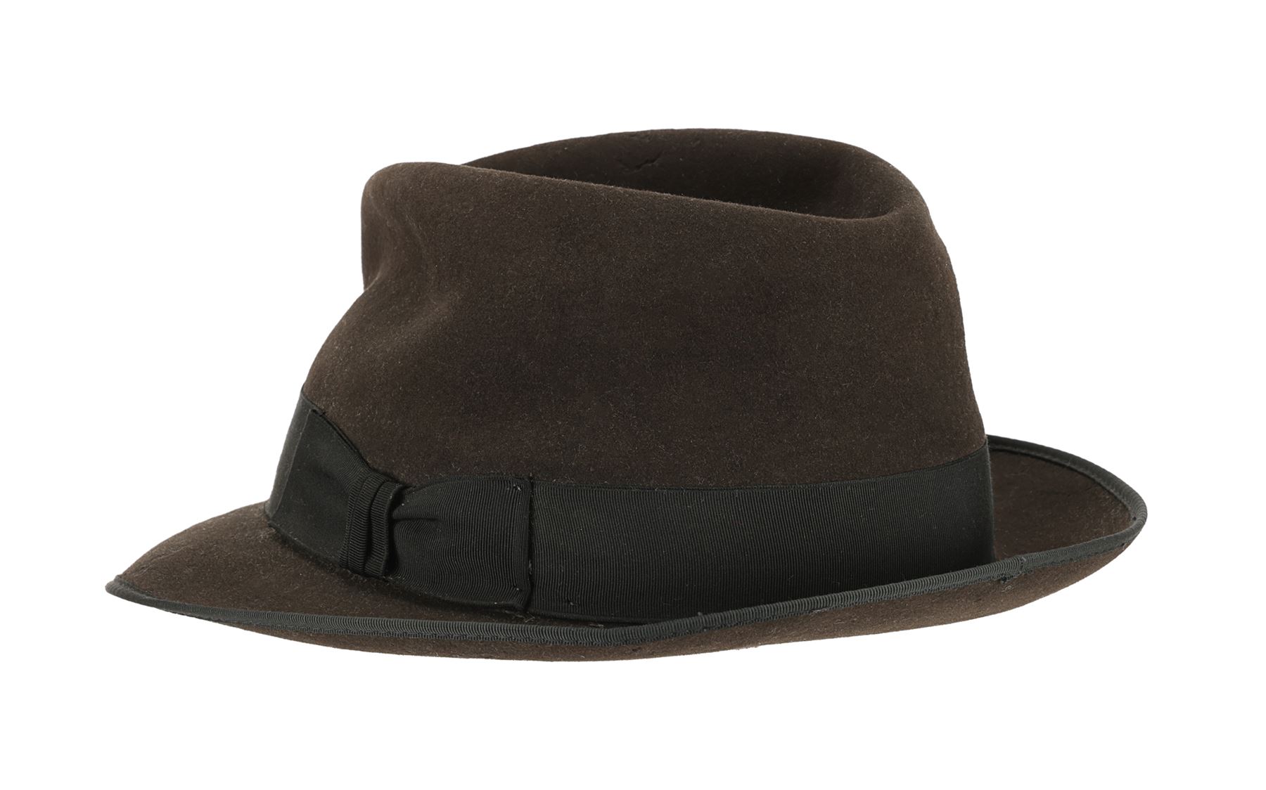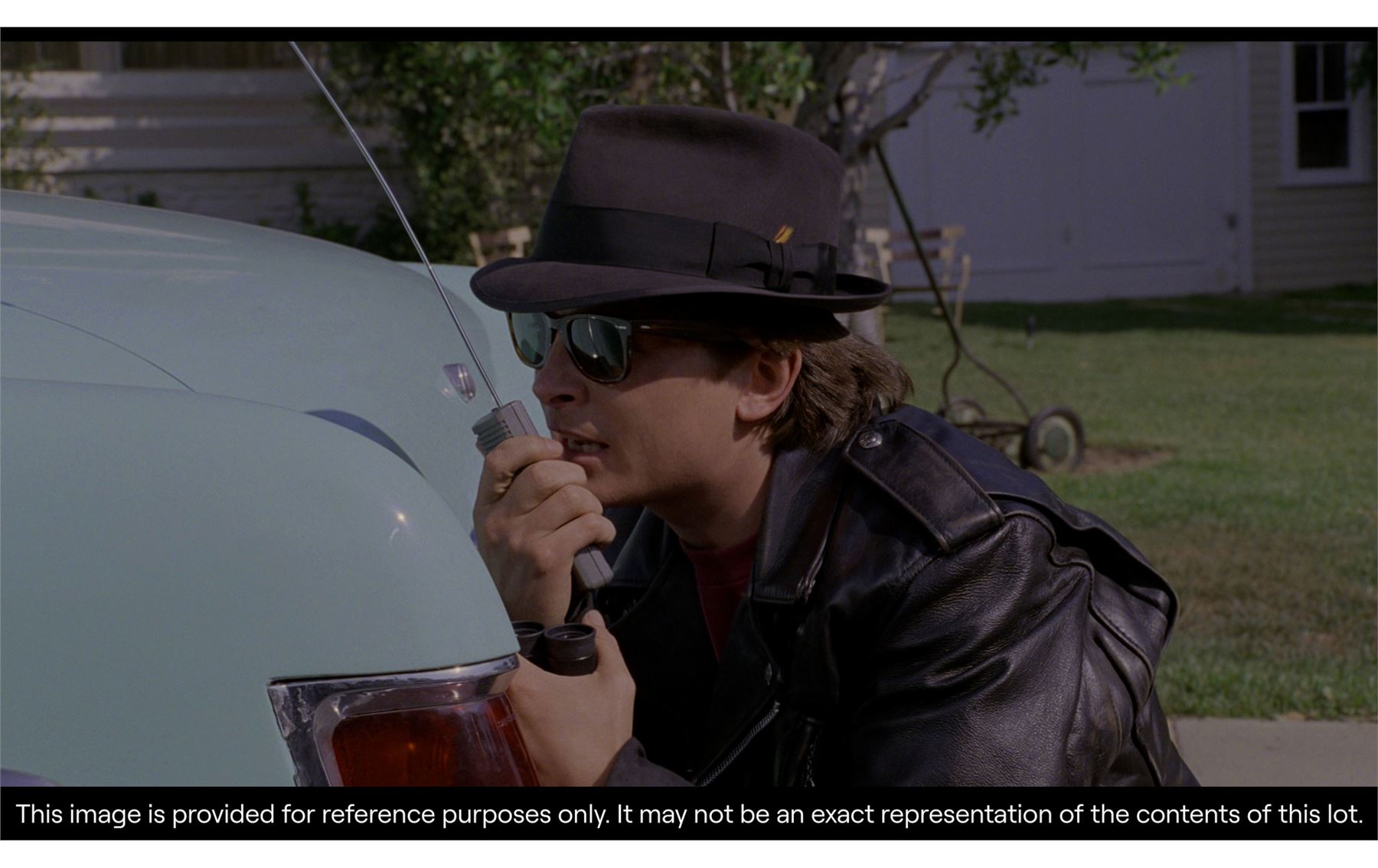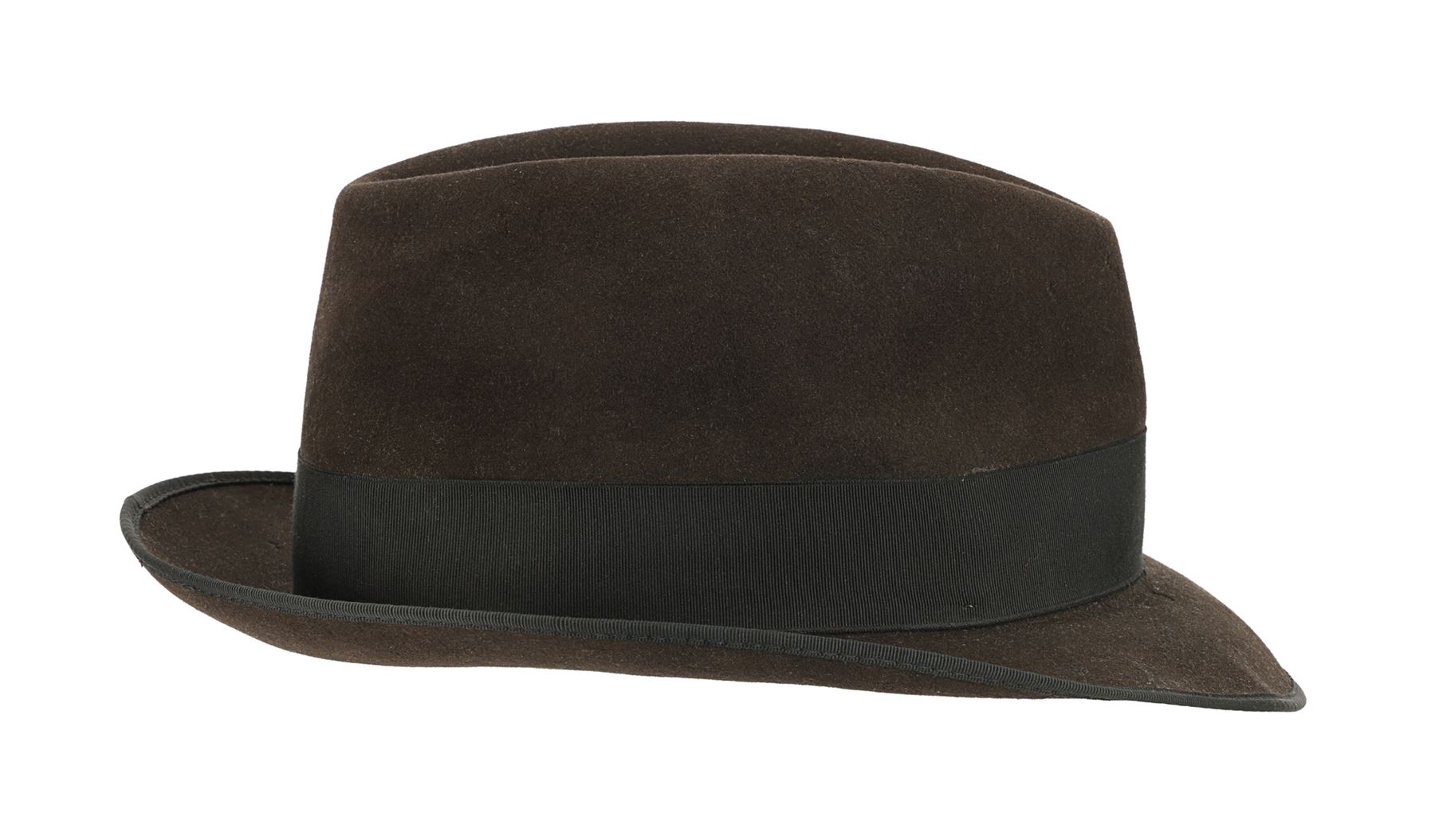 Marty McFly's (Michael J. Fox) Stetson trilby from Robert Zemeckis' sci-fi sequel Back to the Future: Part II. One of only two made for the film, the trilby was worn by Marty throughout his return trip to 1985, while pursuing the stolen Grays Sports Almanac.