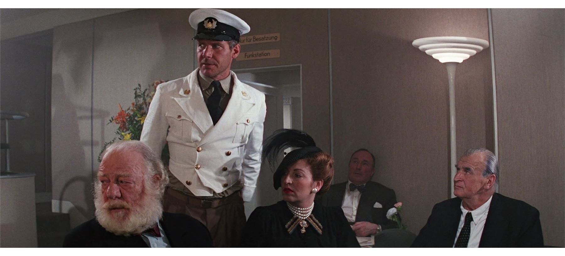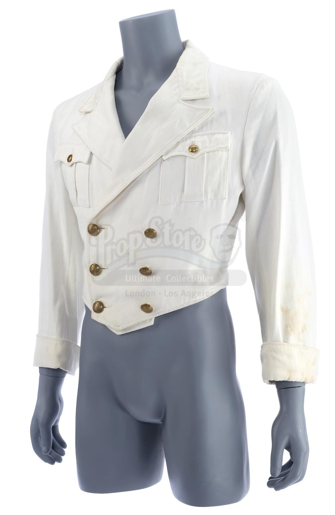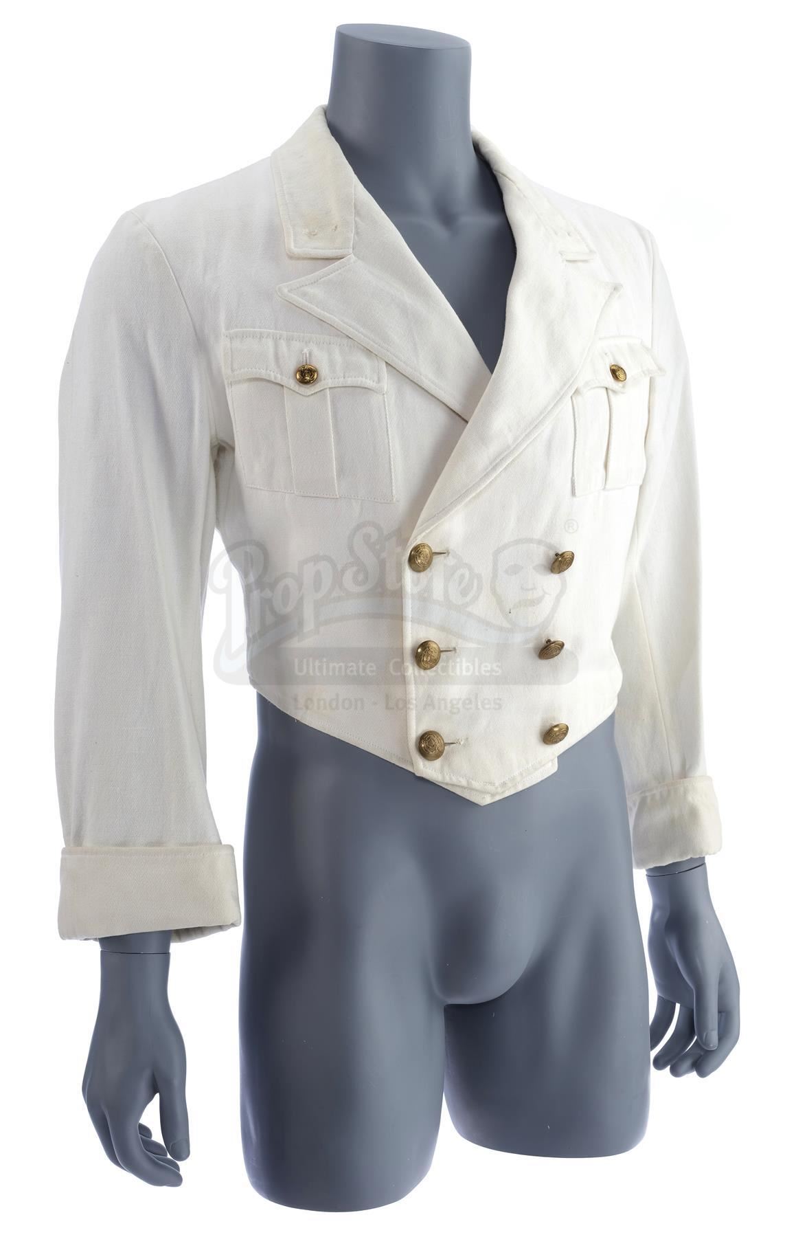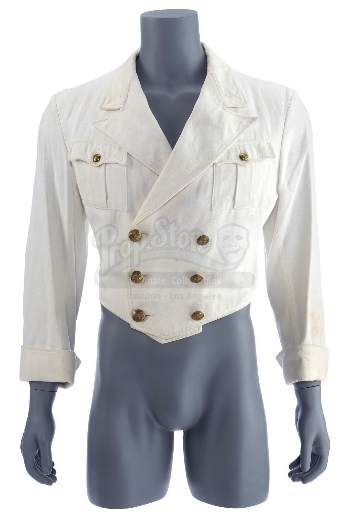 Indiana Jones' (Harrison Ford) screen-matched zeppelin waiter jacket from Steven Spielberg's adventure sequel Indiana Jones and the Last Crusade. When Indy and Henry Jones, Sr. (Sean Connery) boarded a zeppelin out of Nazi Germany, Indy disguised himself as a waiter and tossed Vogel (Michael Byrne) off the ship.