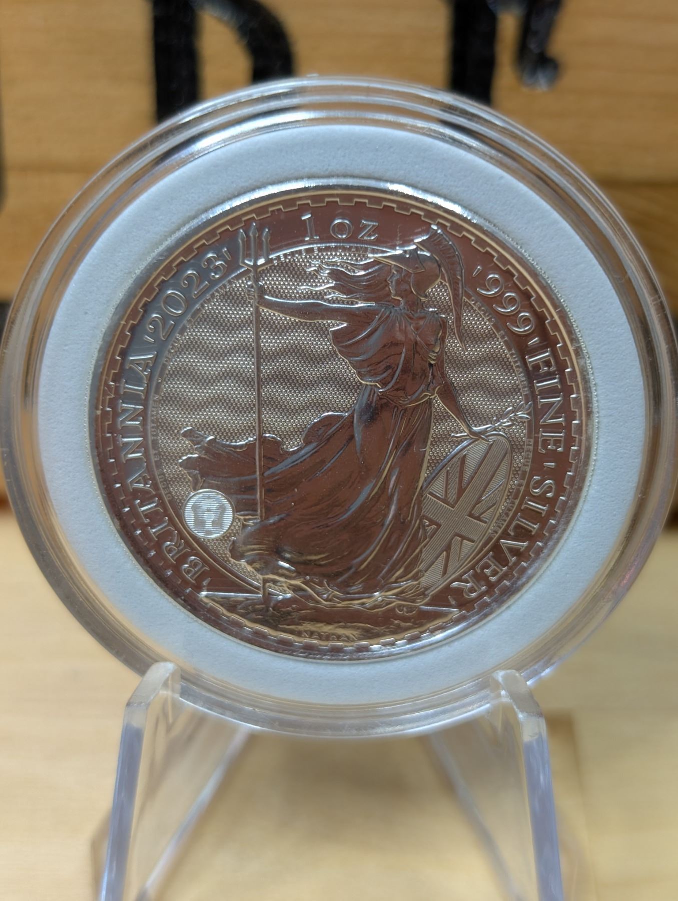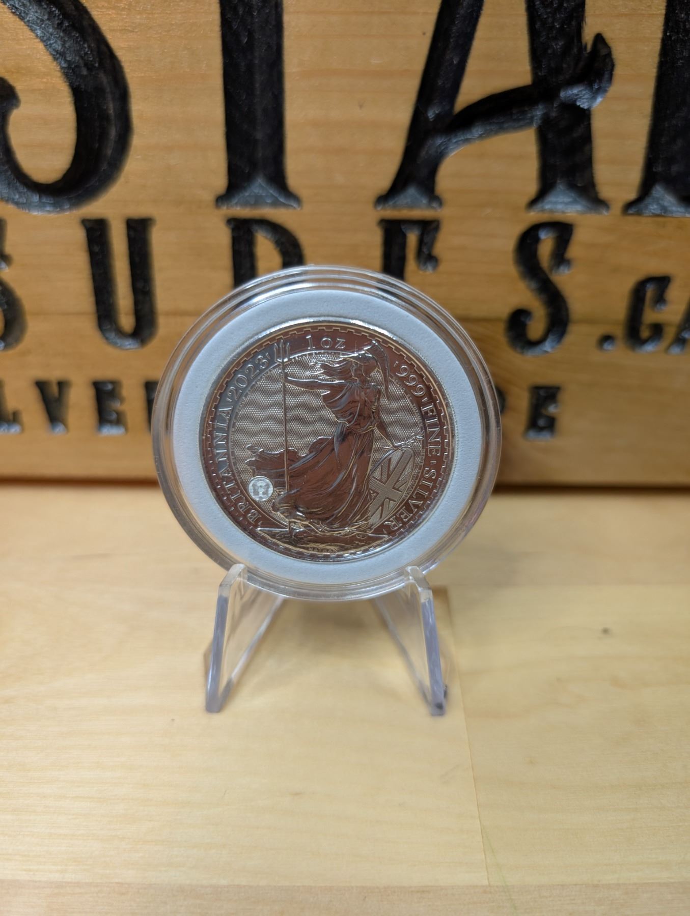 The 1 oz Britannia 2023 silver round is made from .999 fine silver and features the iconic Britannia design, symbolizing British strength and heritage. Issued by various mints, it typically showcases Britannia in a classical pose, holding a trident and shield. The value of the round is influenced by the current silver price and its appeal to collectors.