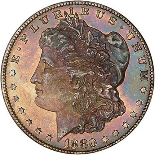1880-S Morgan Dollar. Strong cameo contrast between the frosted devices and highly reflective field on both sides. Well toned. (#97119)