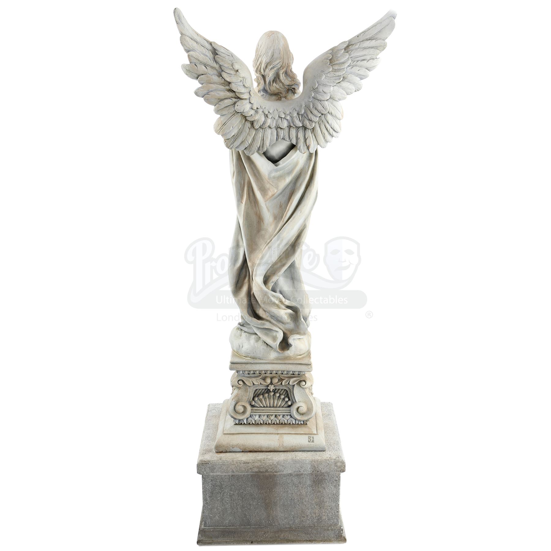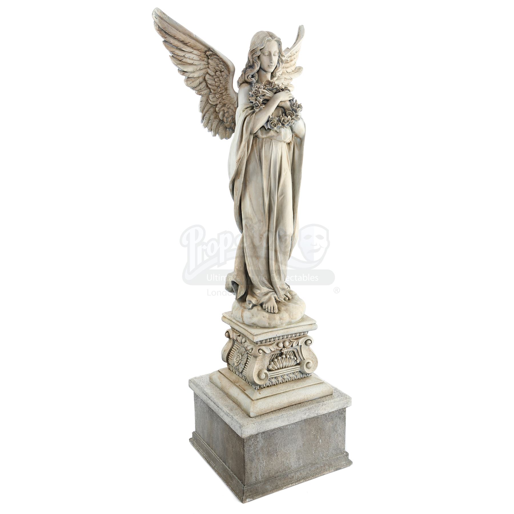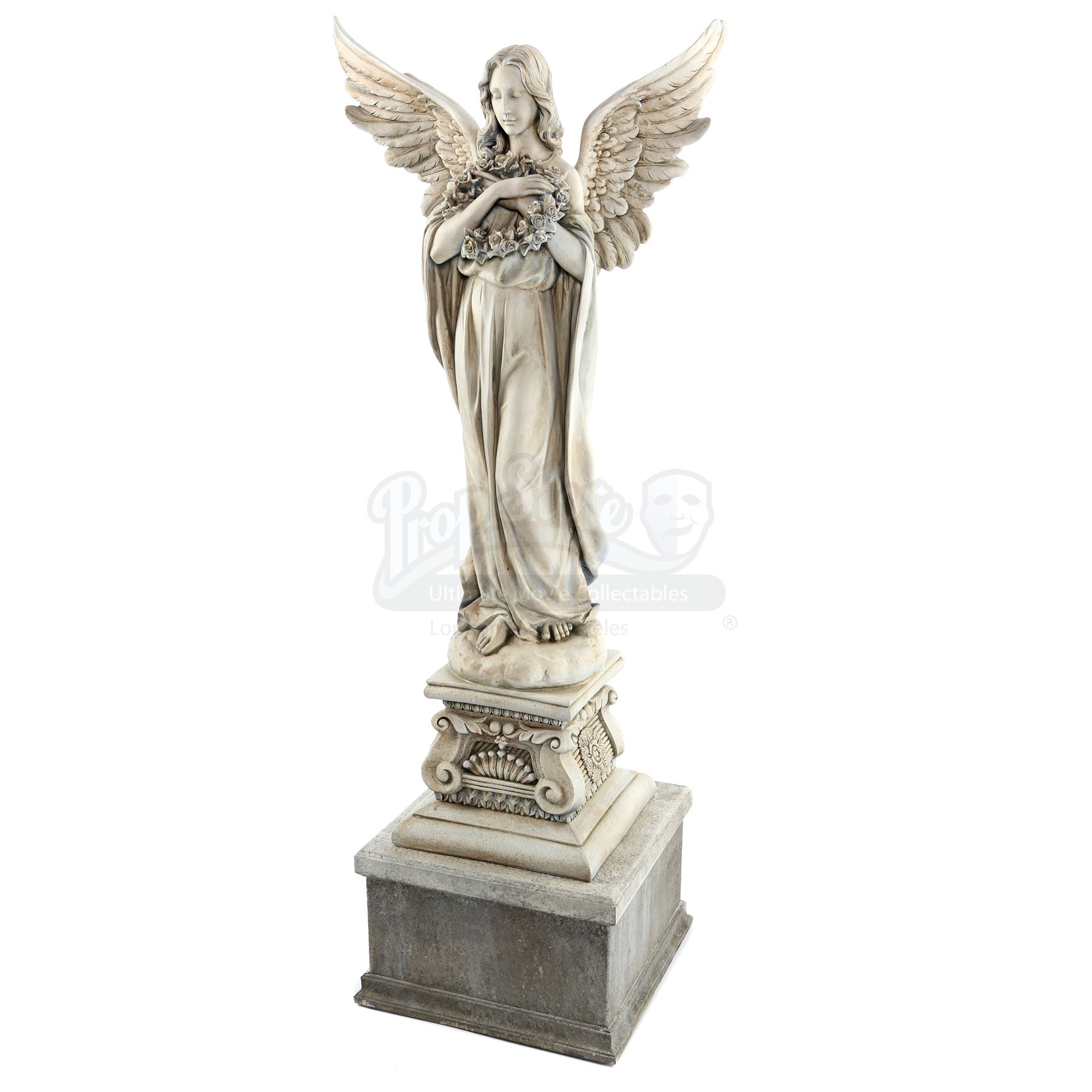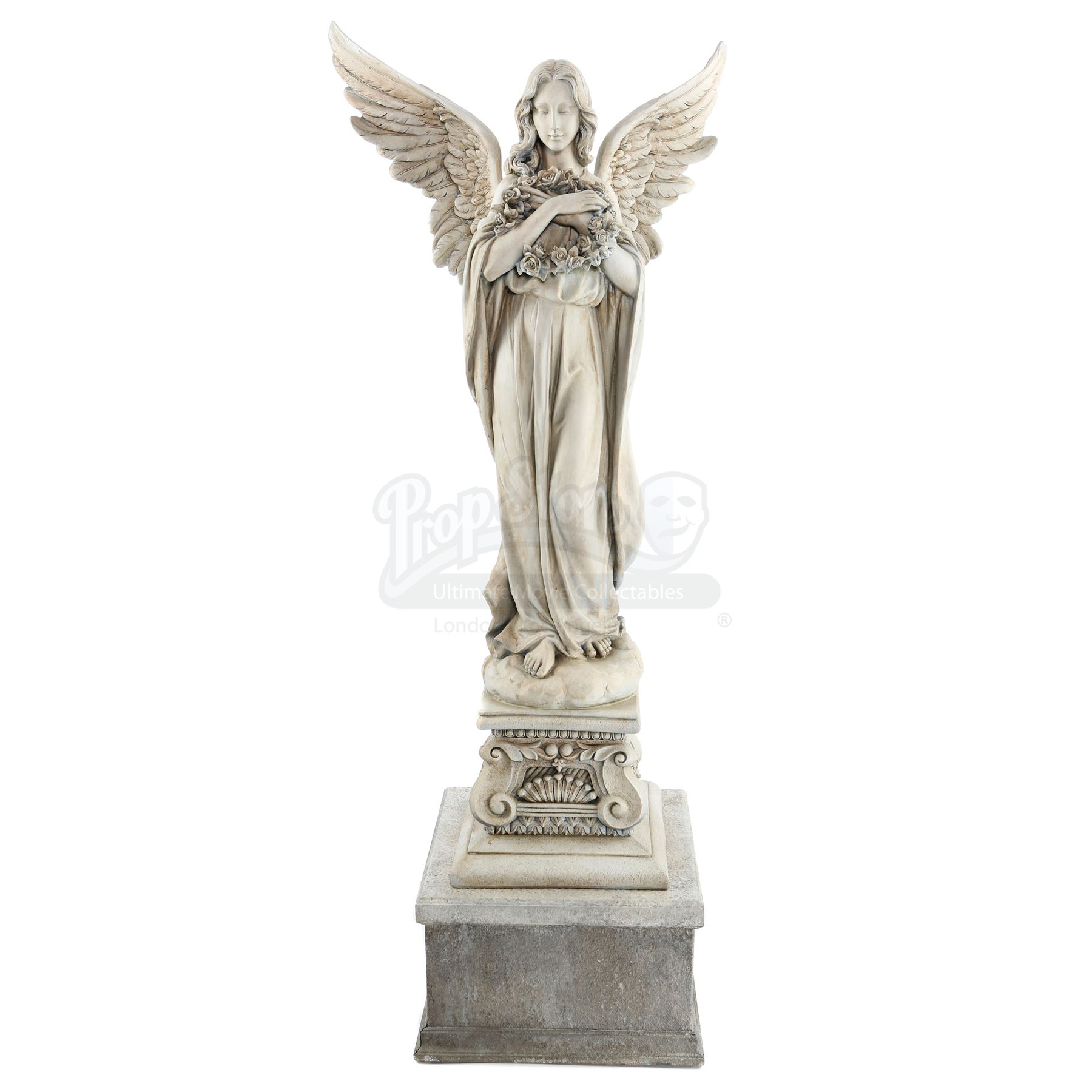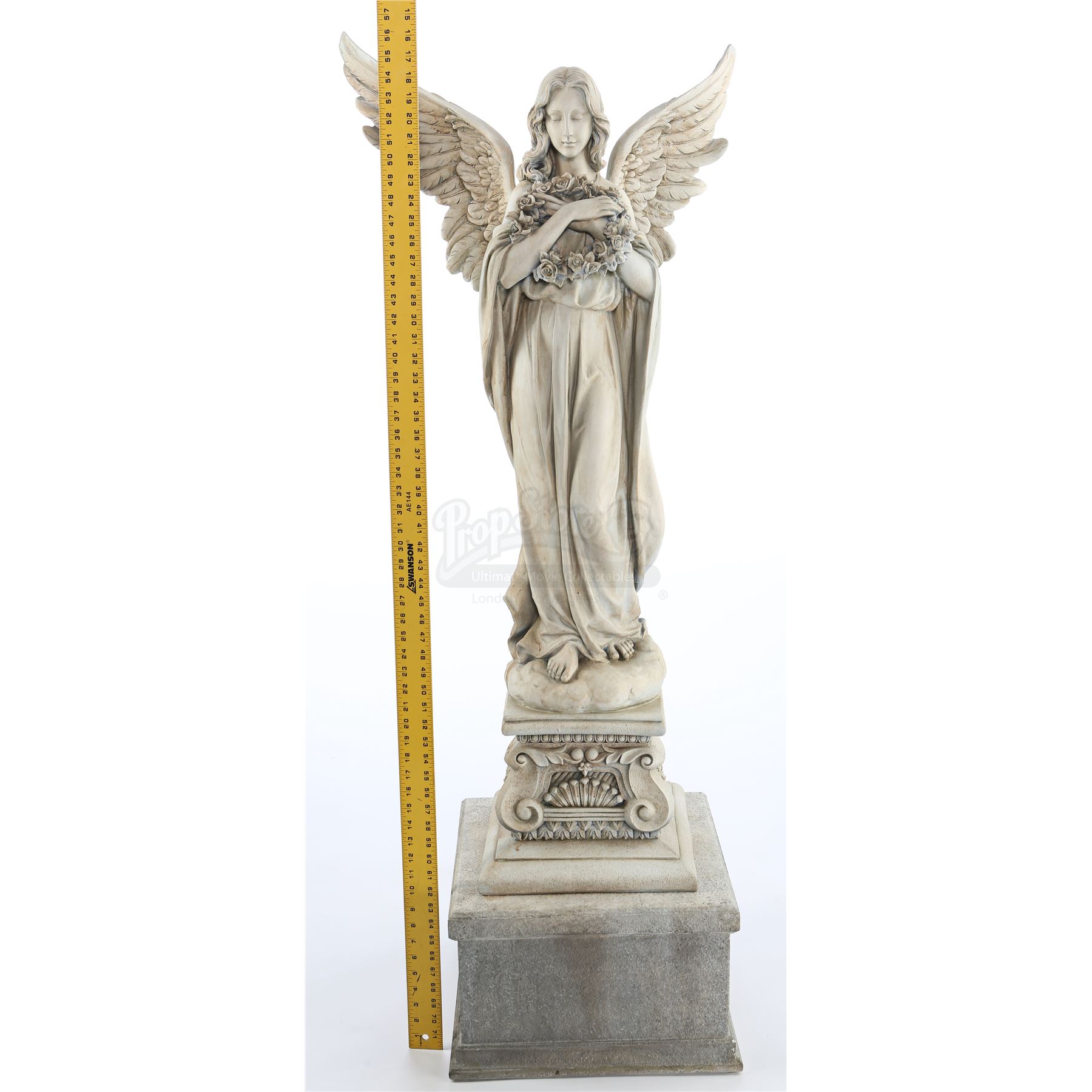A church angel statue from the episode ‘Reunion’ (311) of Marvel’s Daredevil. In the episode, Benjamin ‘Dex’ Poindexter searches for Matt Murdock in a church basement filled with angel statues. This lot consists of a gray plaster and resin statue of an angel with a wooden base and detachable wings. It is in good overall condition with minor signs of handling by production. This is an oversize lot that requires special shipping.