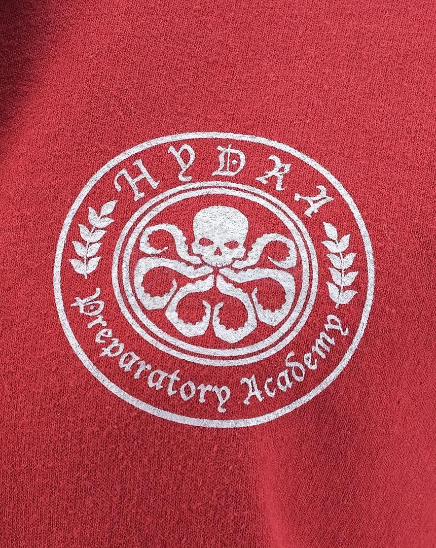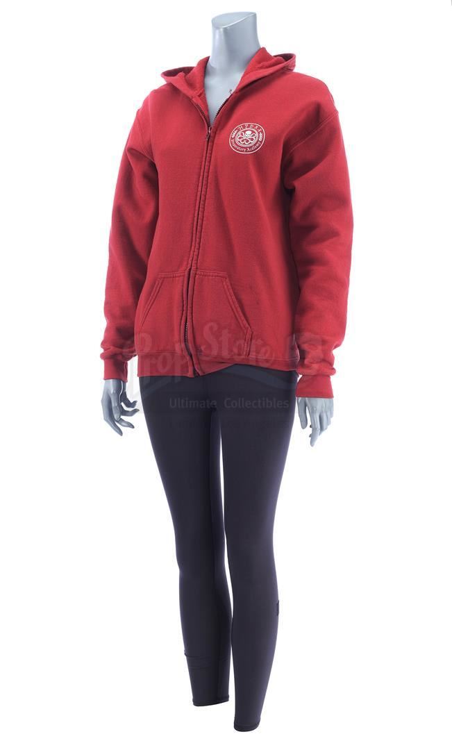 Ruby Hale's partial Hydra Academy costume from the episode 'The Honeymoon' (517) of Marvel's Agents of S.H.I.E.L.D. In the episode, Hale wears her costume while she is visited by Werner von Strucker, and later, when she confronts her mother. This lot consists of a dark red cotton blend zip-up hooded sweatshirt with the Hydra Academy logo on the chest and a pair of black blended-fabric leggings. The lot is in excellent overall condition with minimal wear from production.
