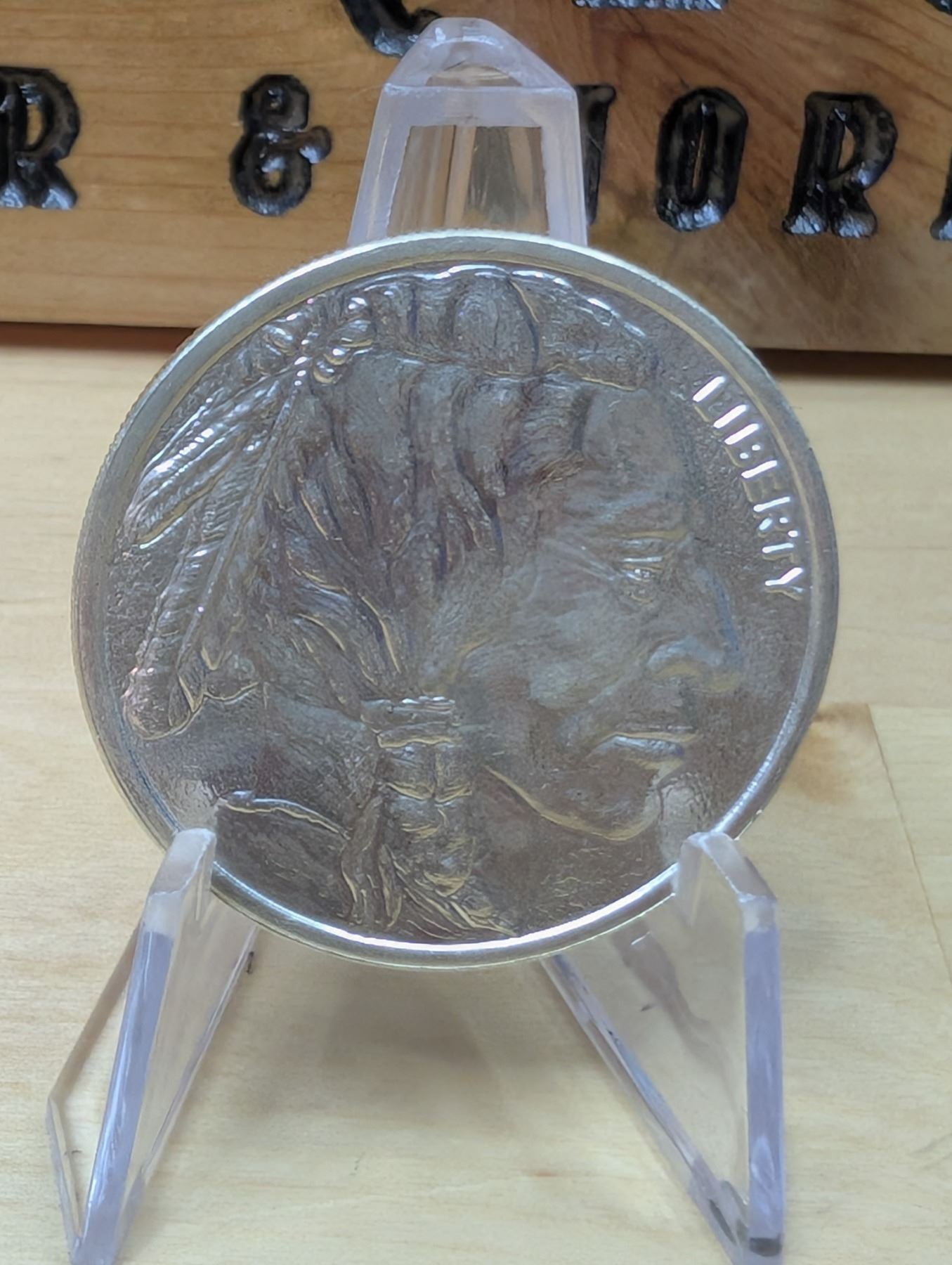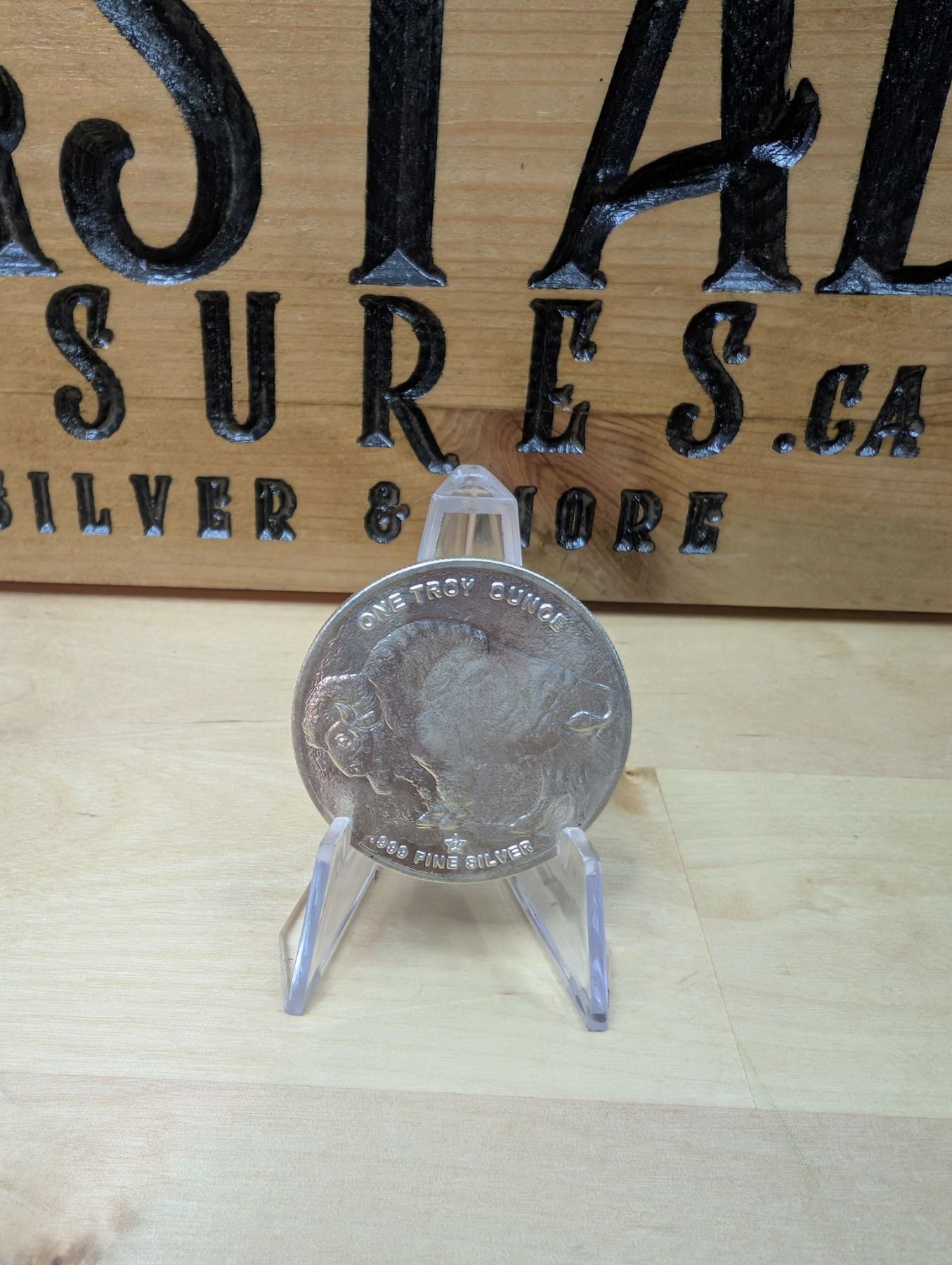 A 1 oz Buffalo Silver Coin is a bullion coin made of 99.9% pure silver. It features a design inspired by the iconic American Buffalo, with the image of a buffalo on the reverse and a profile of a Native American on the obverse. The coin weighs 1 troy ounce (31.1 grams) and is typically issued by private mints or government entities. It is popular with collectors and investors due to its appealing design and silver content.