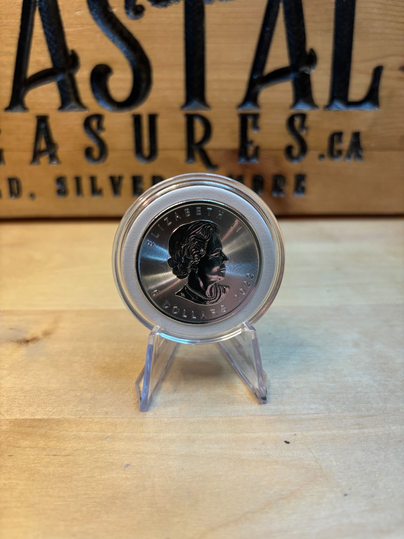 The 2022 1 oz Canadian Silver Maple Leaf is a .9999 fine silver coin featuring King Charles III on the obverse and the iconic maple leaf on the reverse. With advanced security features and MINTSHIELD™ protection, it’s perfect for collectors and investors.