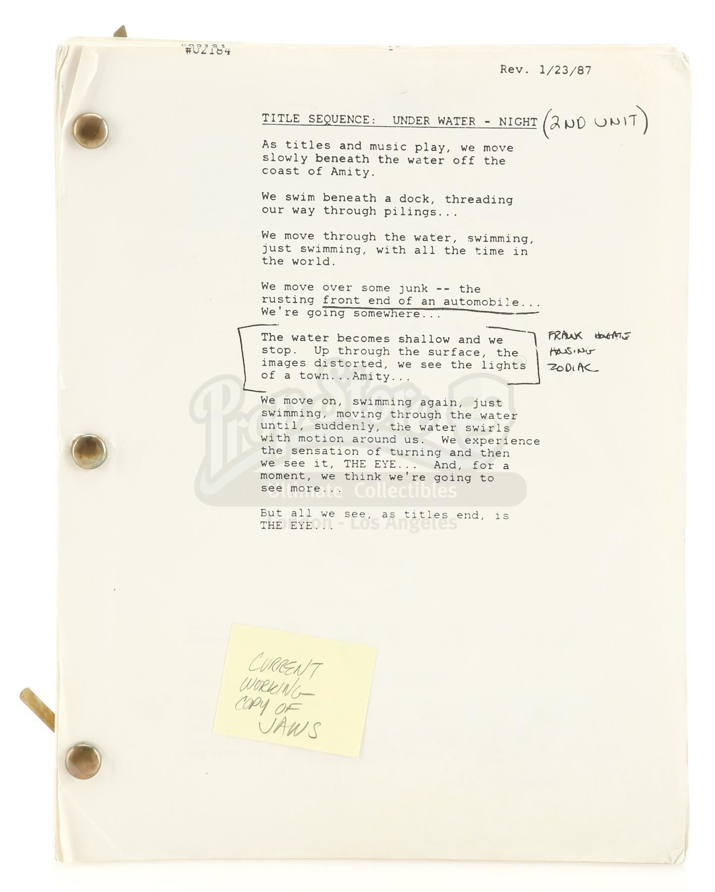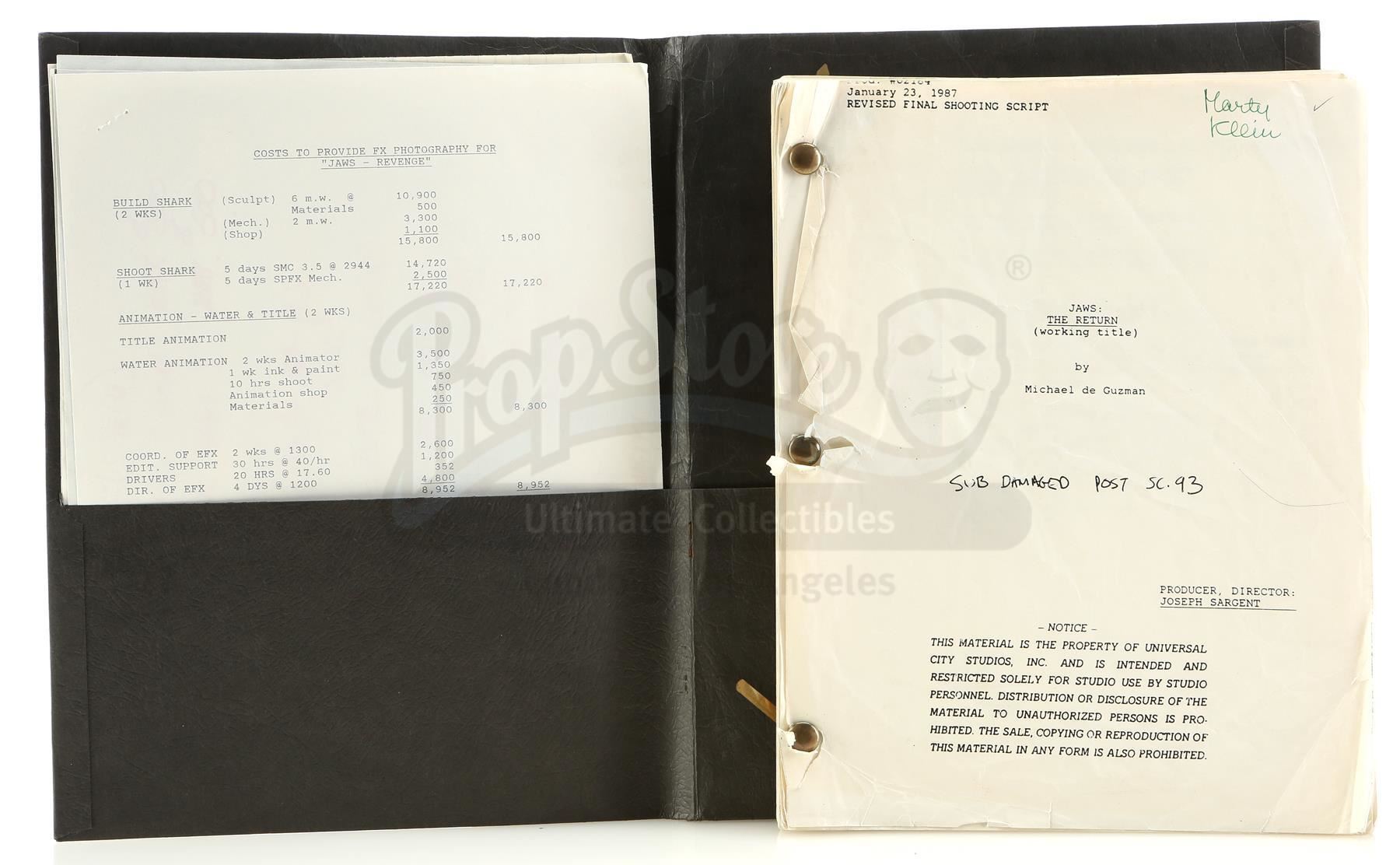 Lot #390 - JAWS: THE REVENGE (1987) - Script and Production Notes