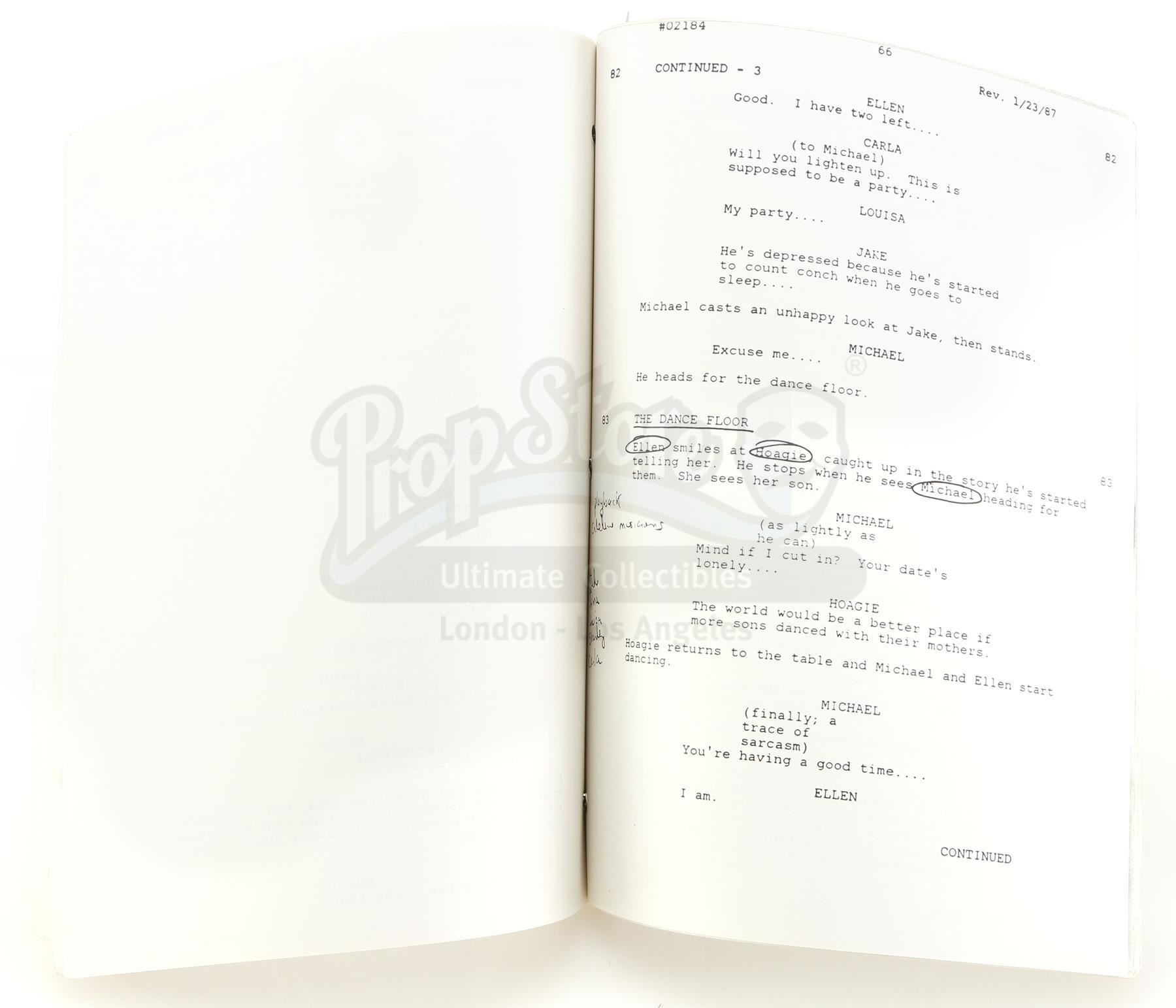 A script and set of production notes from Joseph Sargent's thriller Jaws: The Revenge. The 160-page script by screenwriter Michael de Guzman is the revised final shooting draft, dated January 23, 1987 with handwritten annotations throughout. Multiple pages are revised and are dated from February and March, 1987.