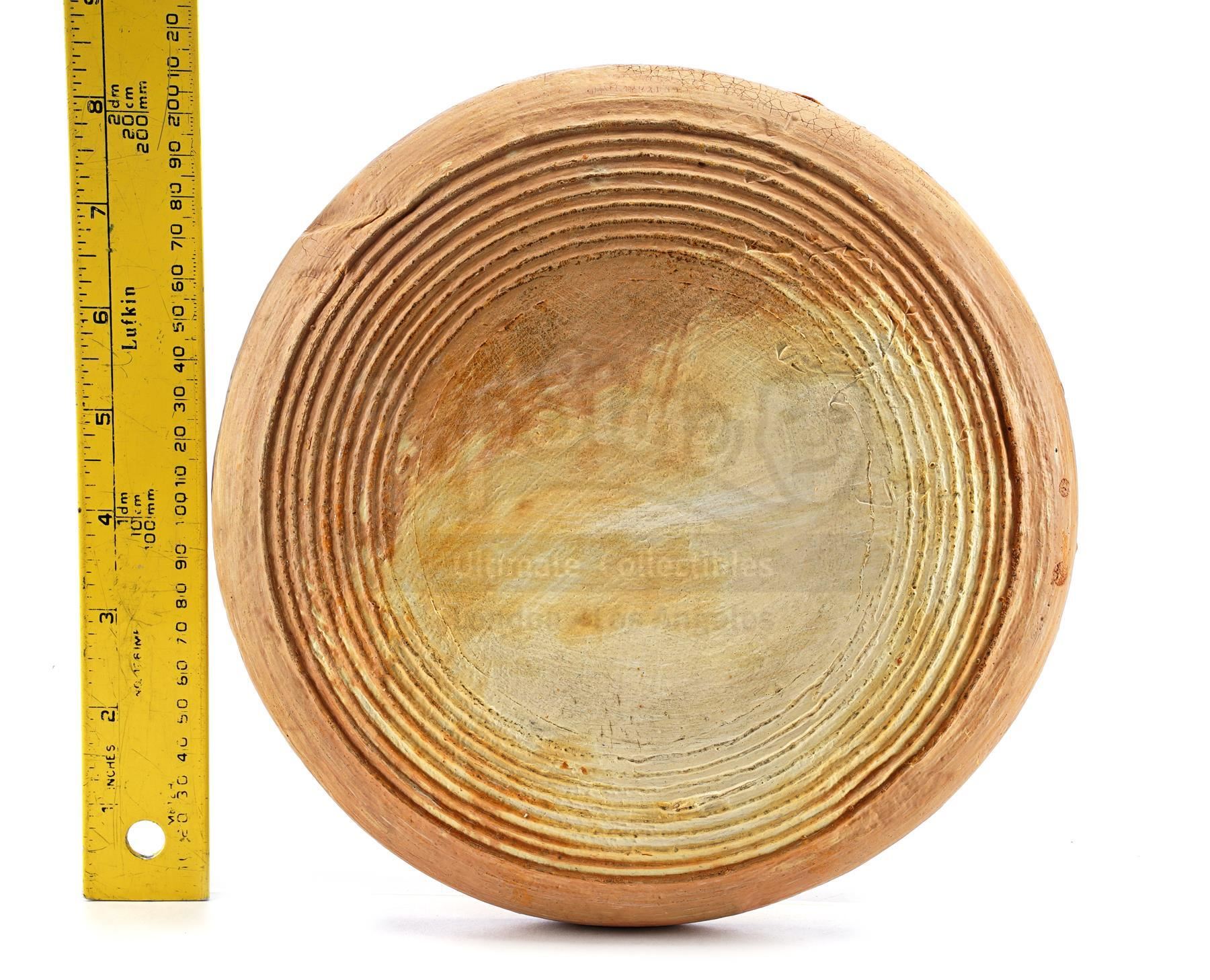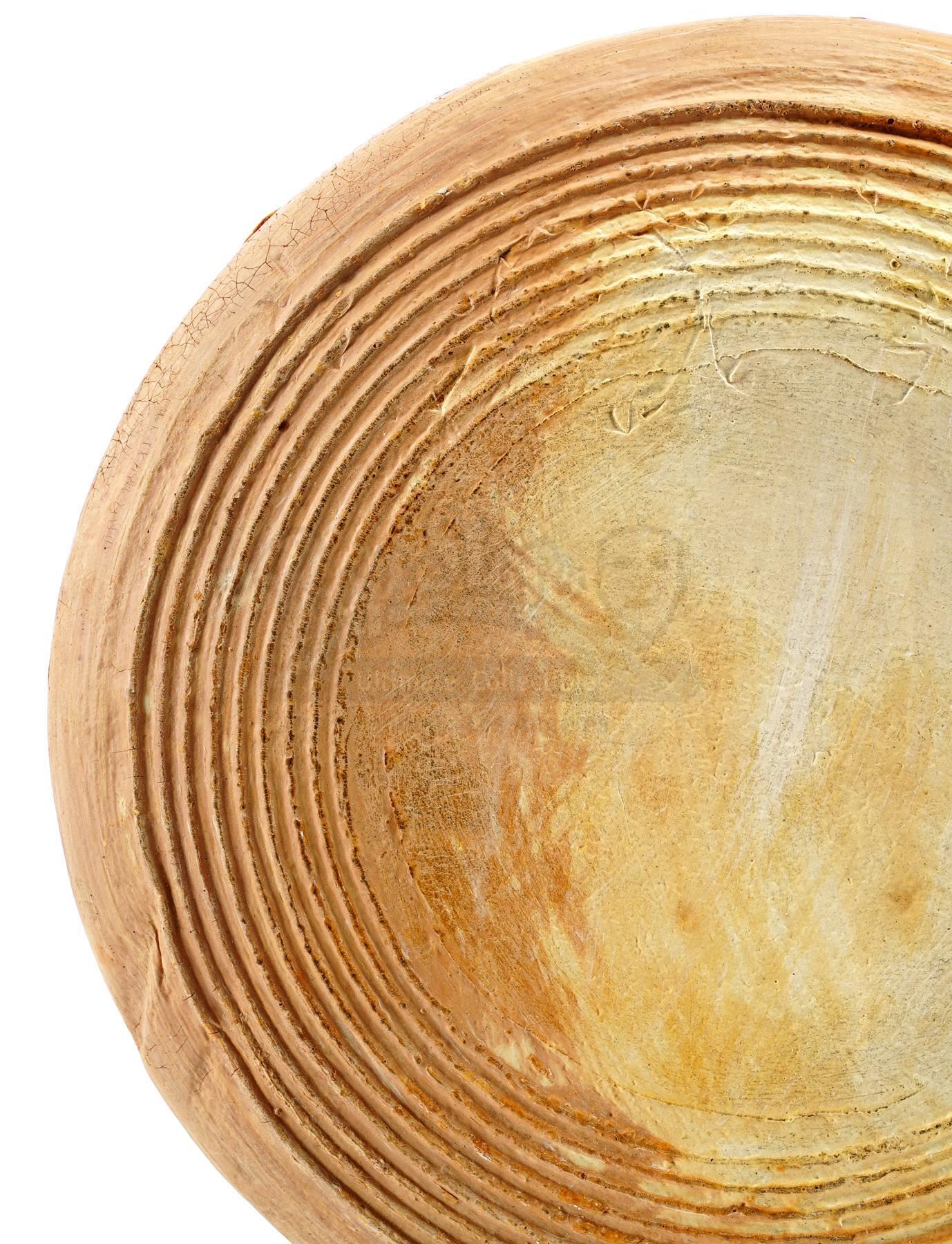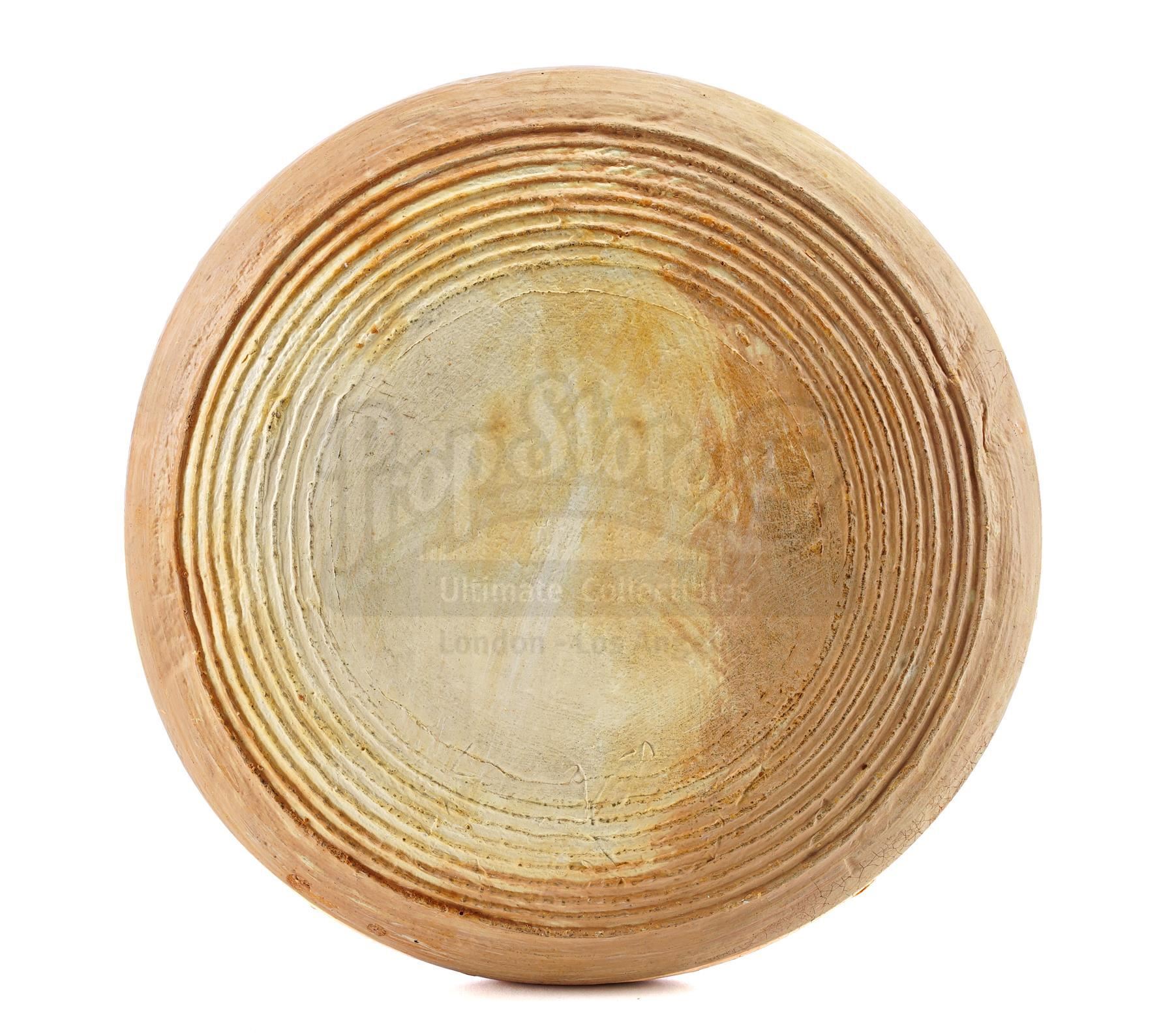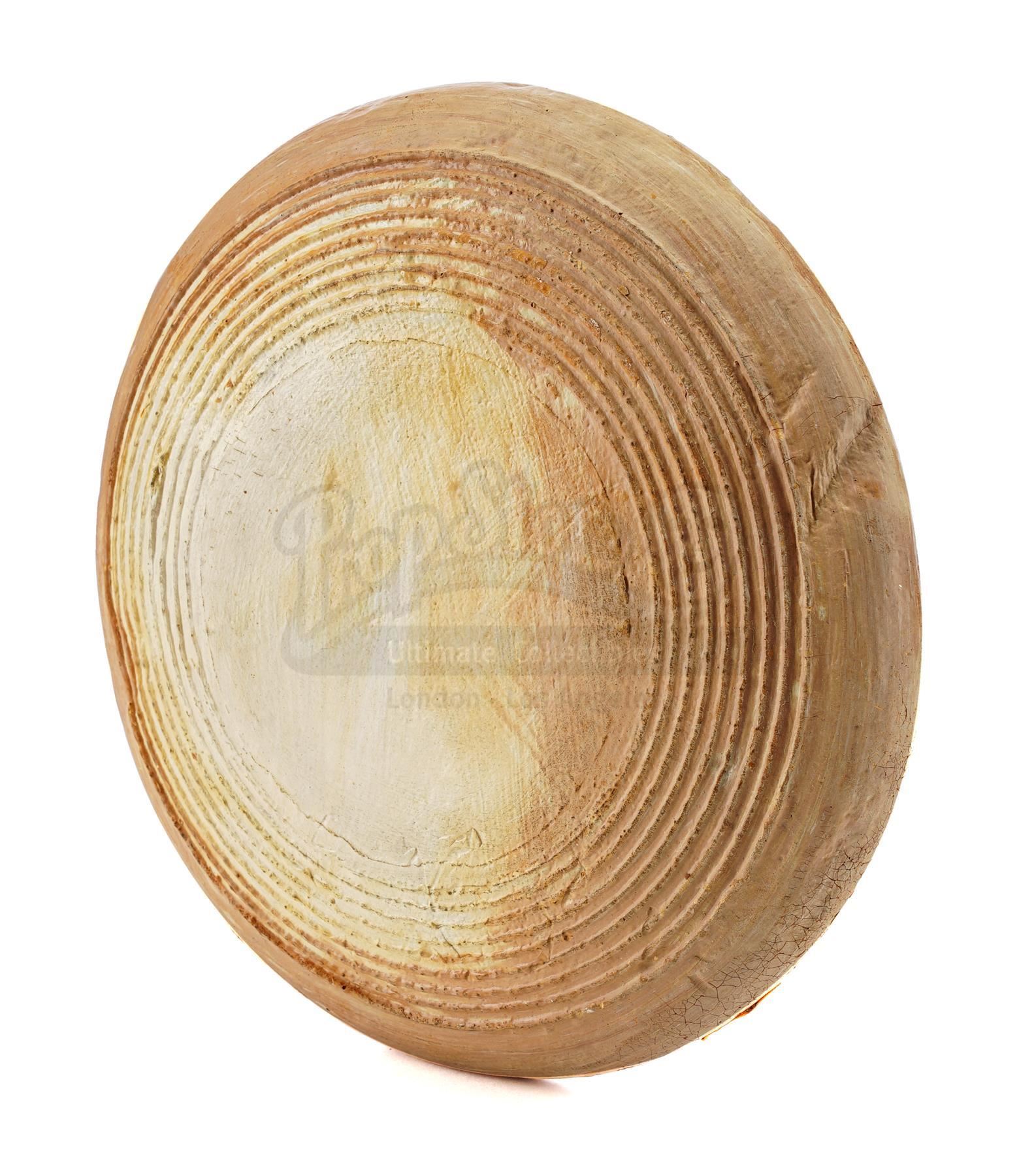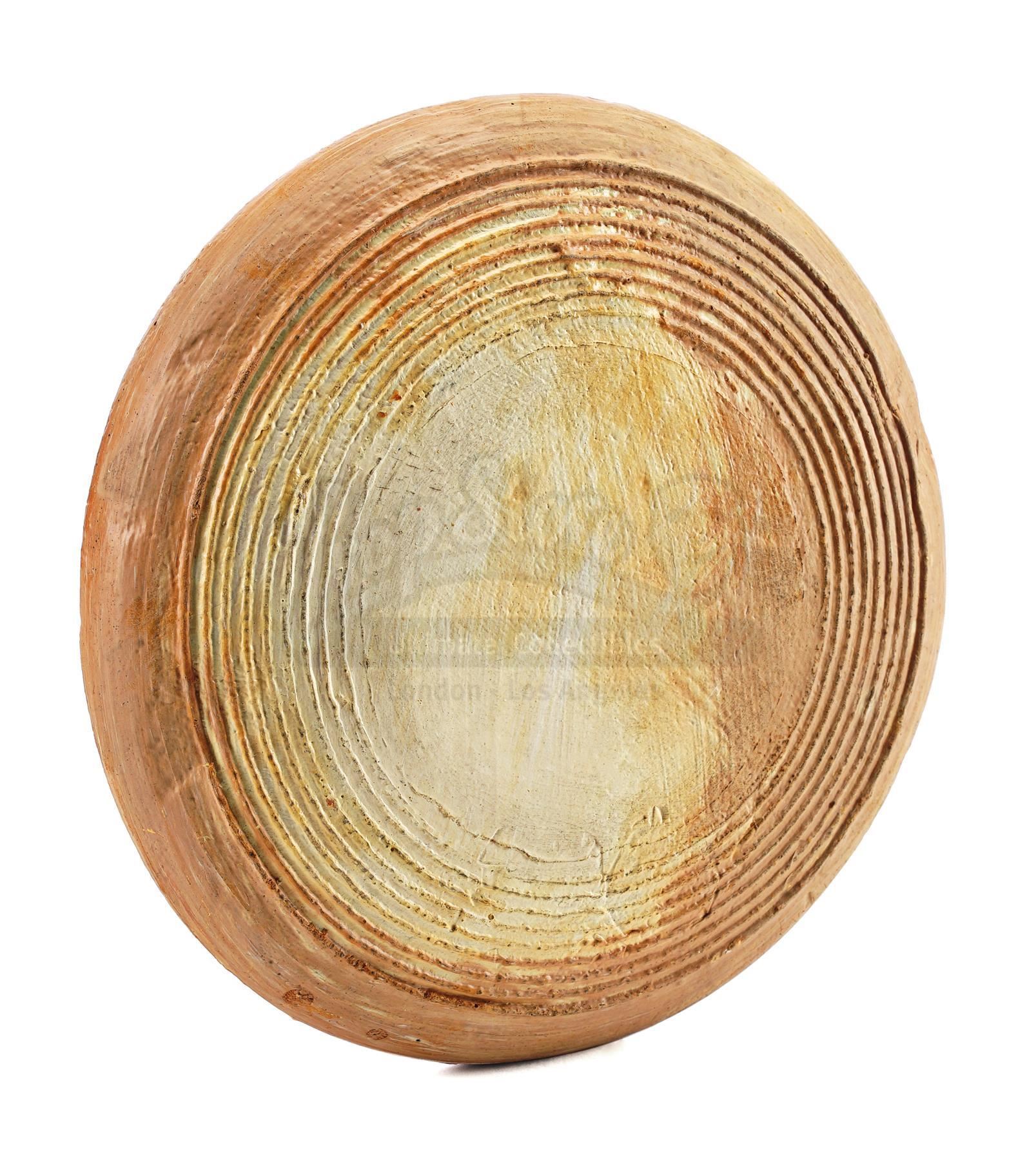 This lot will be auctioned on Tuesday, June 29th. The auction will begin at 9:00am PDT and lots are sold sequentially via live auctioneer; tune in to the live streaming broadcast on auction day to follow the pace. Note other lots in the auction may close on June 30th or July 1st. An unfinished backup identity disc from Steven Lisberger's sci-fi adventure Tron. Computer programmer Kevin Flynn (Jeff Bridges) was transported by the Master Control Program into a digital "Game Grid," where he and his fellow programs were issued discs which could be used for identification and combat. This hand-painted cream-color foam rubber disc features textured ridges on the front. The unpainted back features exposed foam elements. It exhibits signs of wear from age and use, including fading on the paint and small imperfections on the back, but remains in good overall condition. Dimensions: 8.5" x 8.5" x 1" (21.5 cm x 21.5 cm x 2.5 cm) Estimate: $3,000 - 5,000