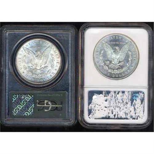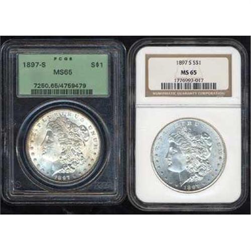 Lot of Two 1897-S Morgan Dollars. One PCGS MS65; the other, NGC MS65. Lot of 2 coins. (#7250)