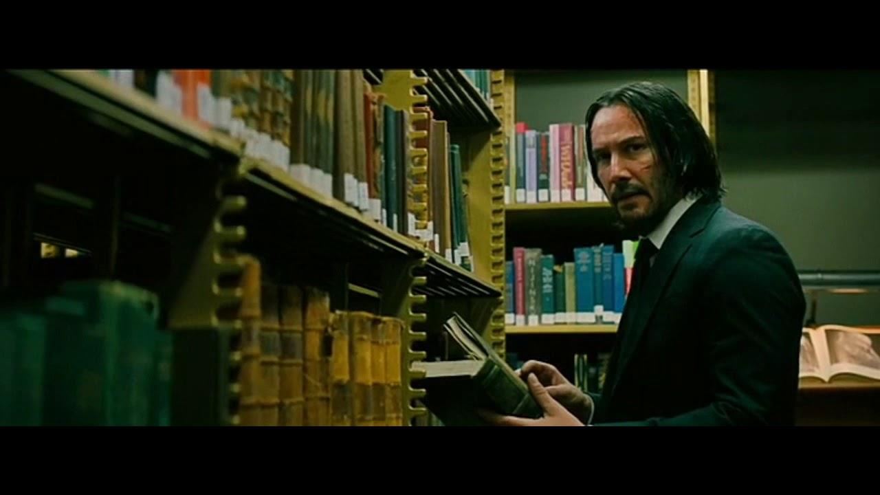 John Wick's bloodied library fight suit costume from Lionsgate's blockbuster hit John Wick: Chapter 3 - Parabellum. Wick wore his costume when massive contract killer Ernest wounded - but failed to kill him - in the library.