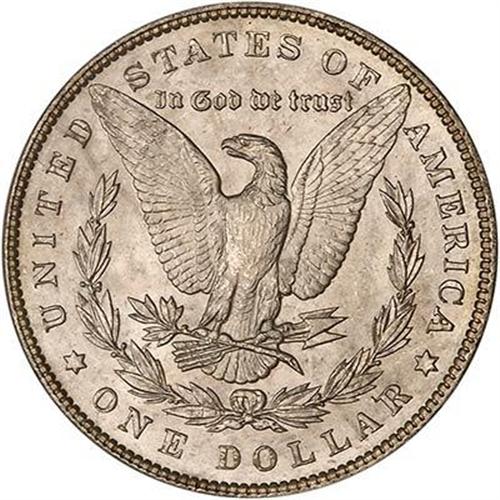 1899 Morgan Dollar. Low mintage issue: 330,846 pieces. Frosty and generally well struck. Two very small marks on the cheek, a couple by the ear, and a minor scuff in the frost over the eye. Otherwise very choice. (#7258)
