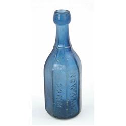 Lot #399F. BLUE BLOB TOP SODA. J. W. Harris Soda, New Haven Conn. Eight sided round with graphite pontil. SIZE: 7-1/2” h. CONDITION: Sick and outside roughness. 9-97296 ~(200-400)