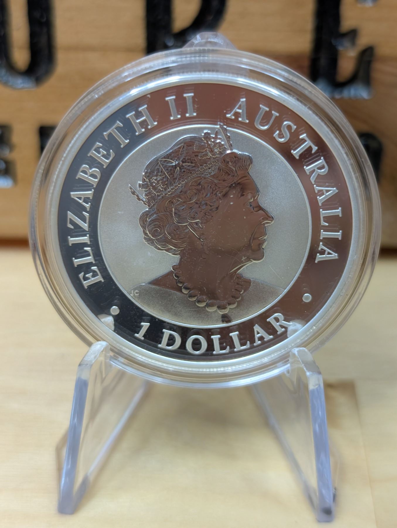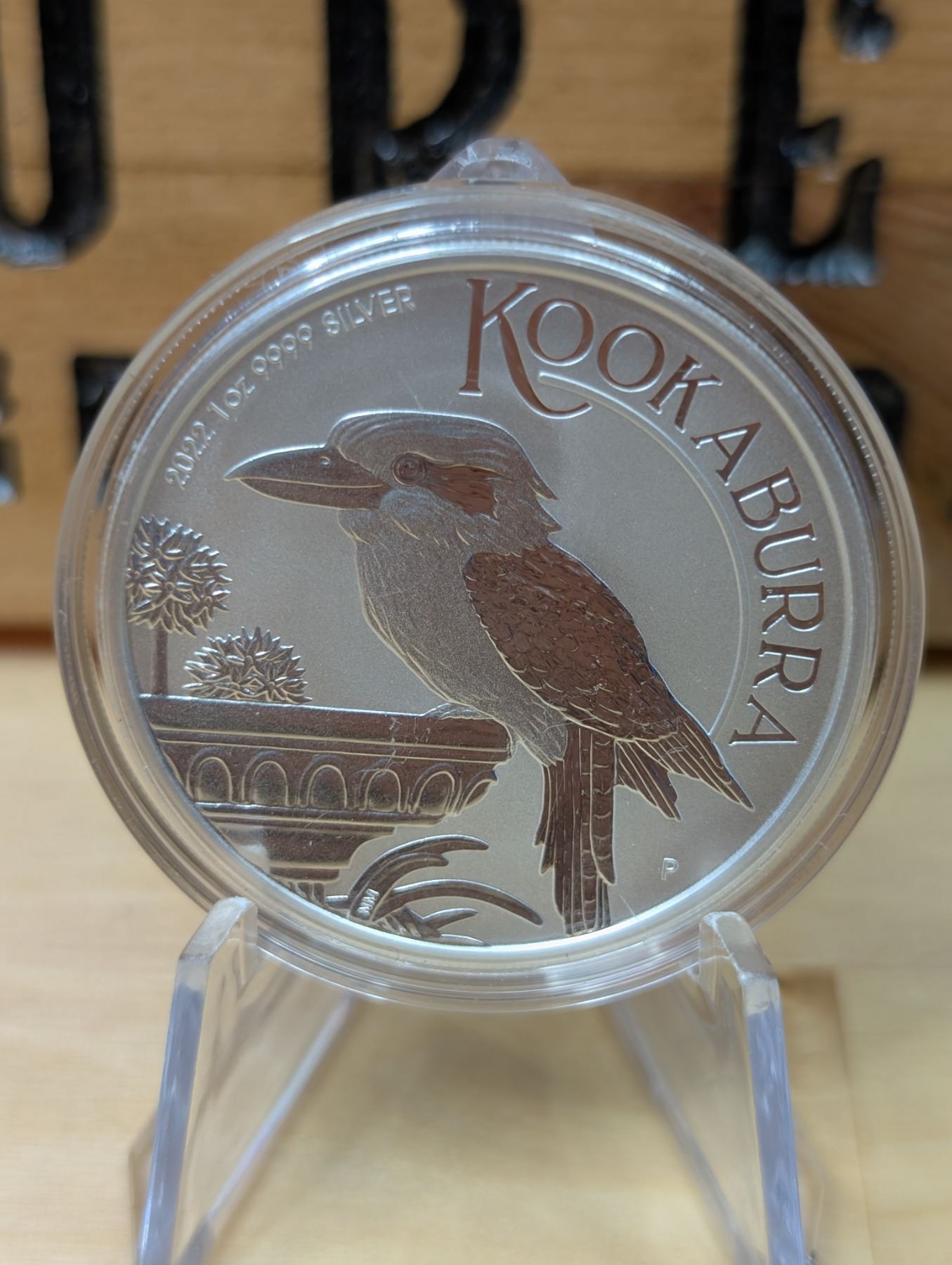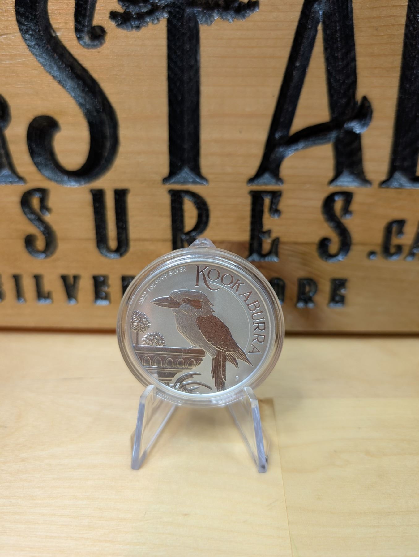 The 1 oz Australian Kookaburra coin is made from .9999 fine silver and features a detailed image of the kookaburra bird, a symbol of Australia. Each year, the design changes, making it a popular choice for collectors. Its value is based on the current price of silver and collector interest.