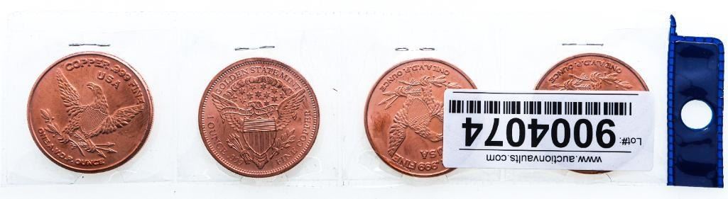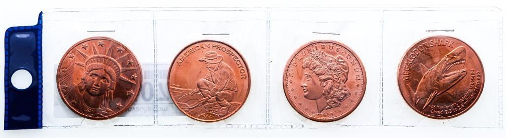 Lot 4 .999 Fine Copper Round Medallions x 1 oz. each.