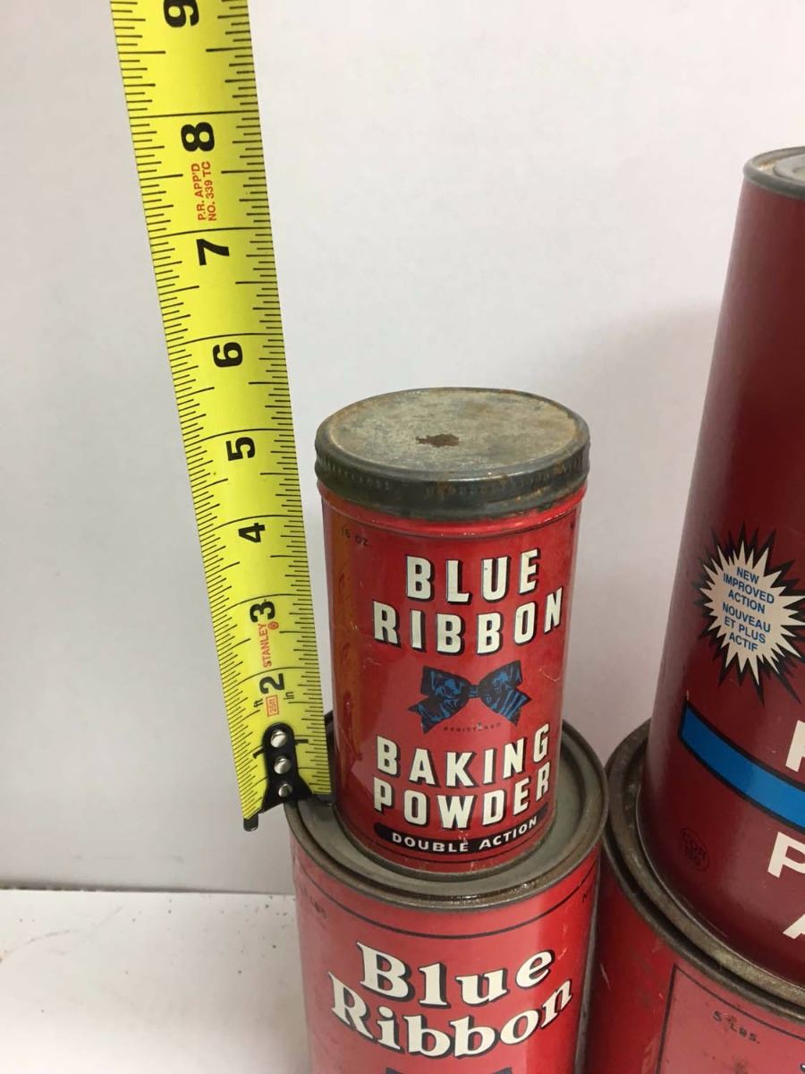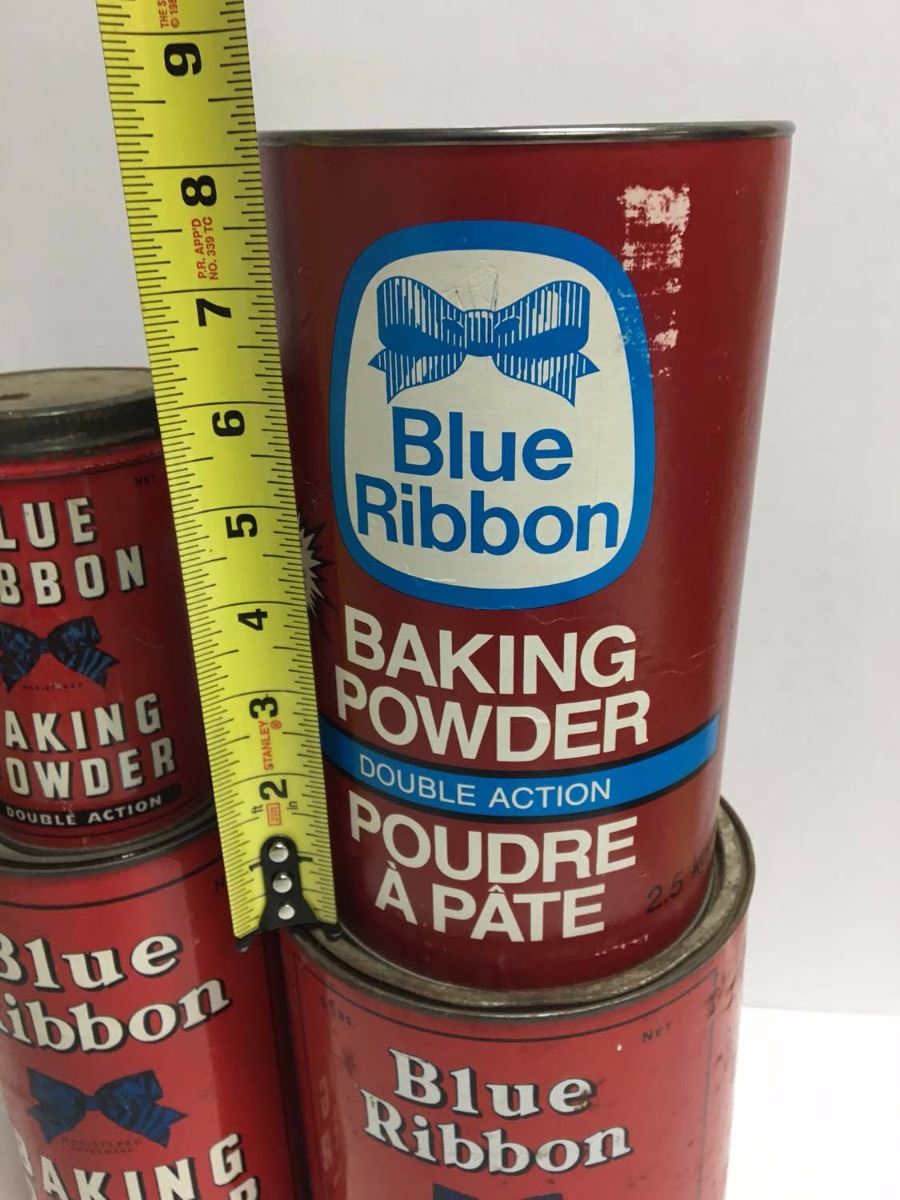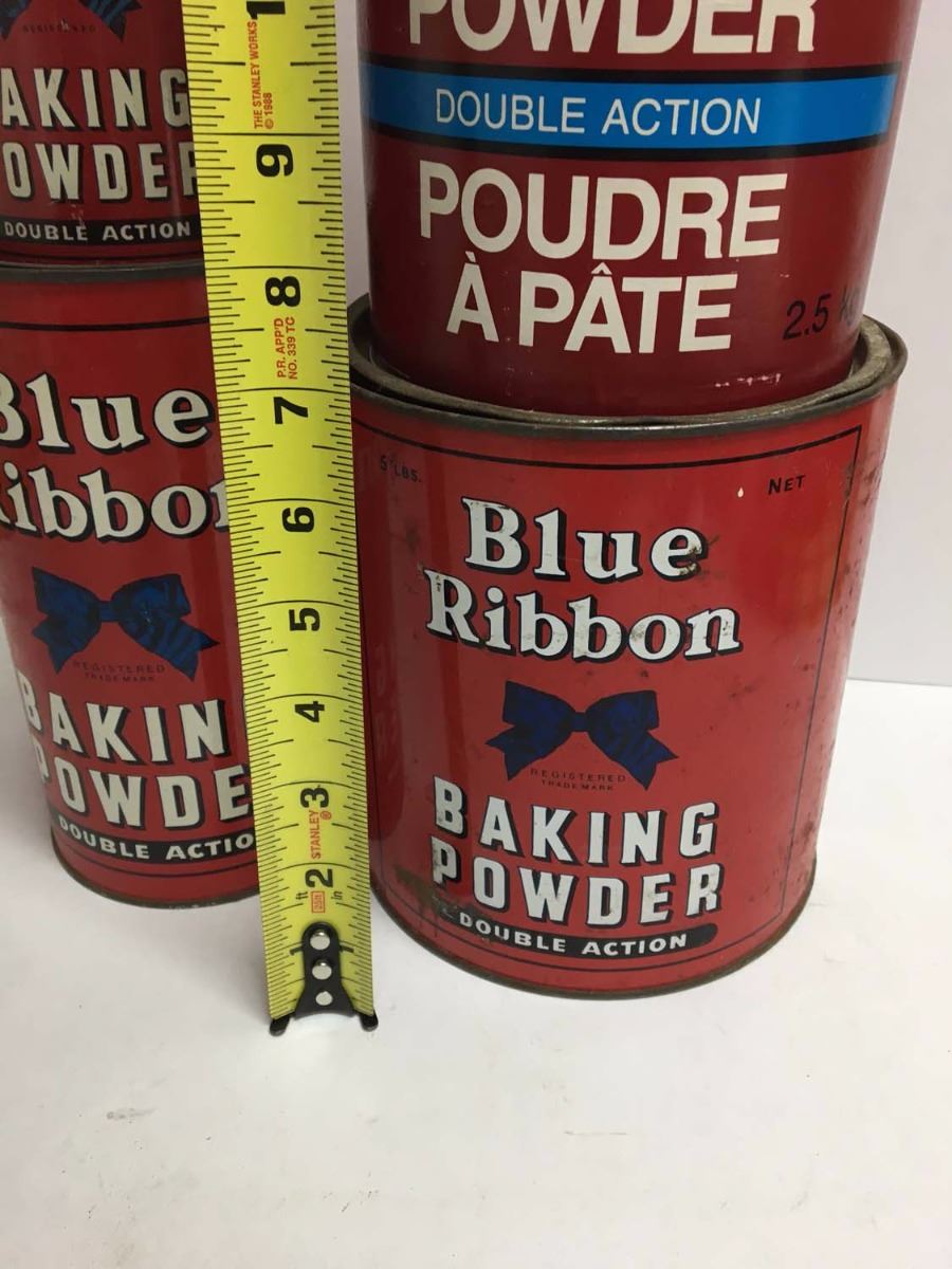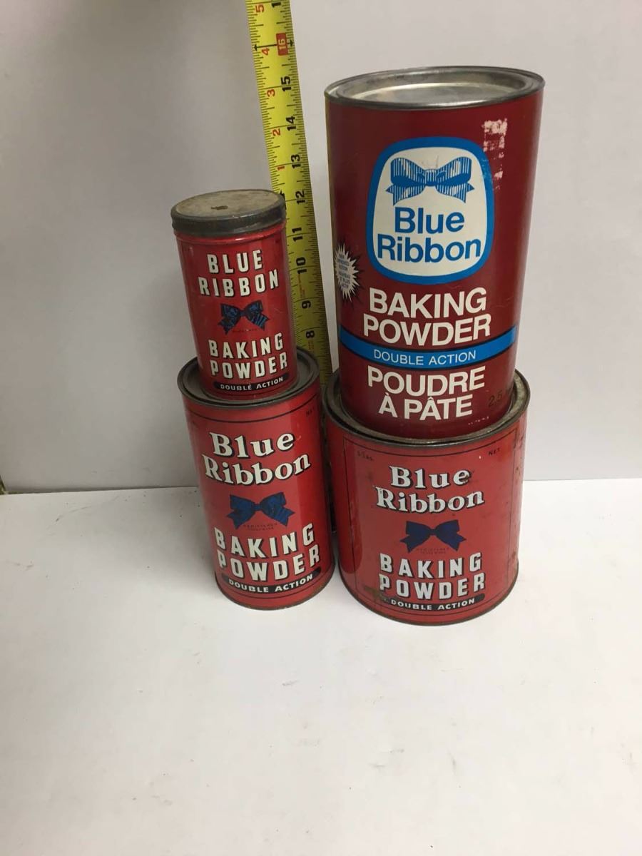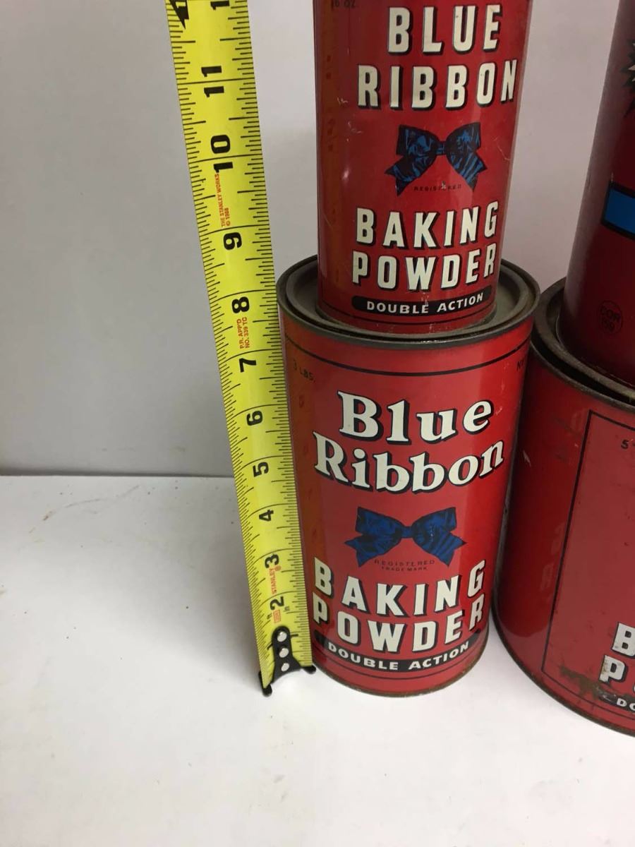 Lot (4) Vintage Blue Ribbon Baking Powder Tins