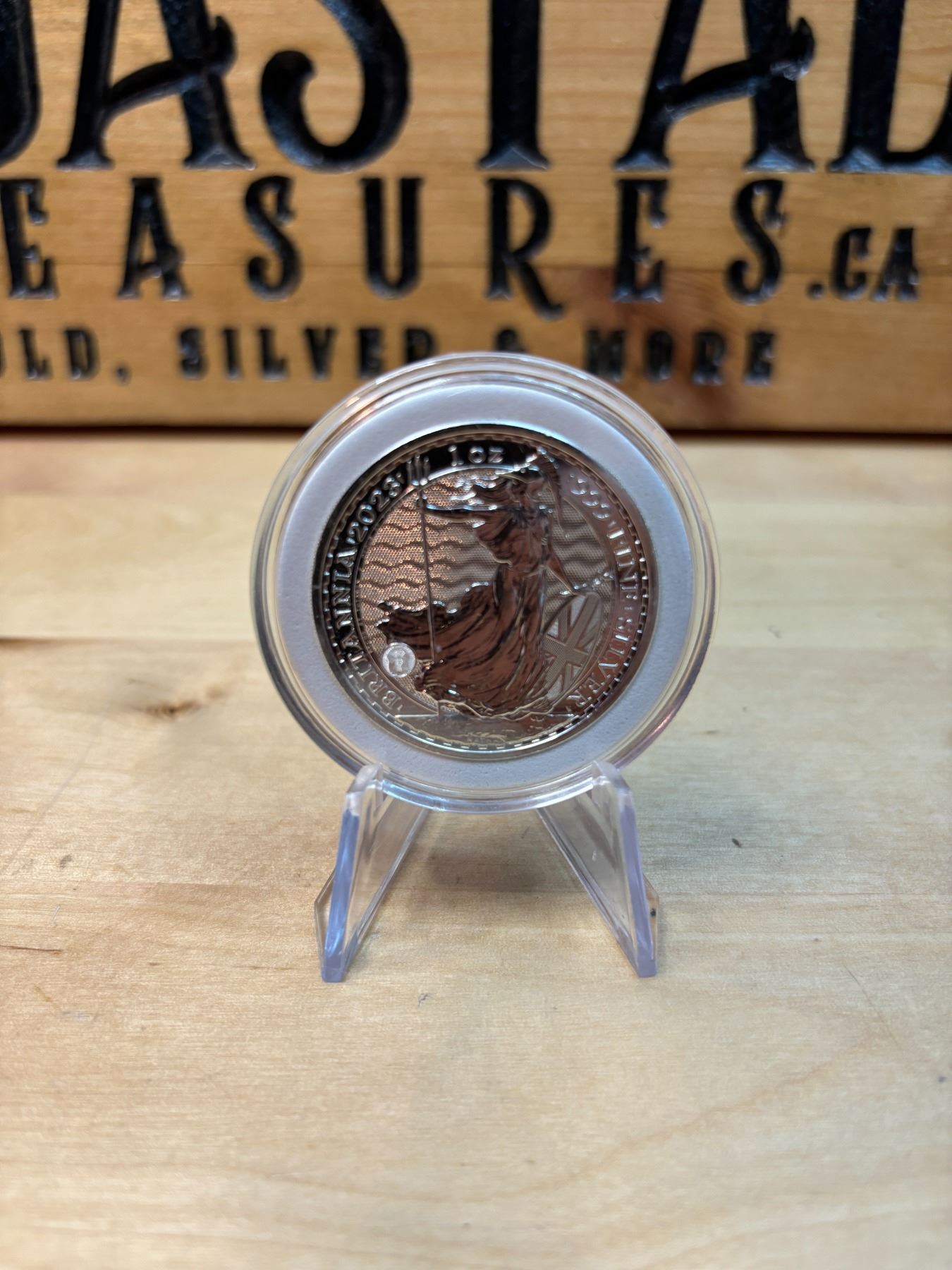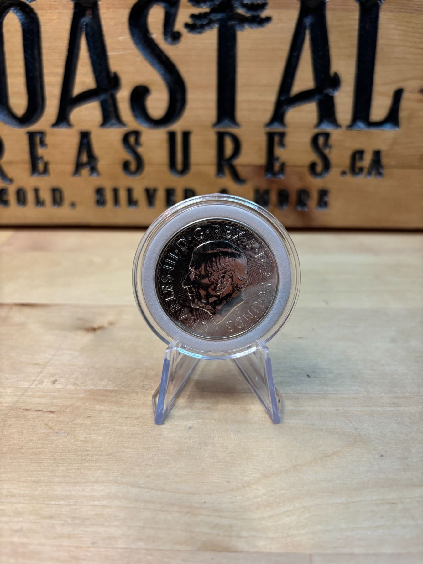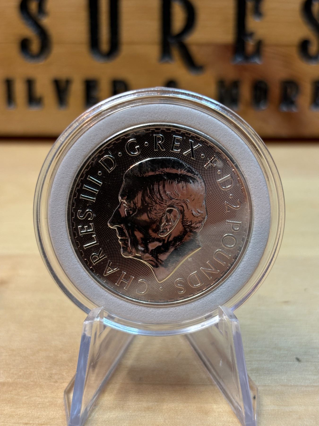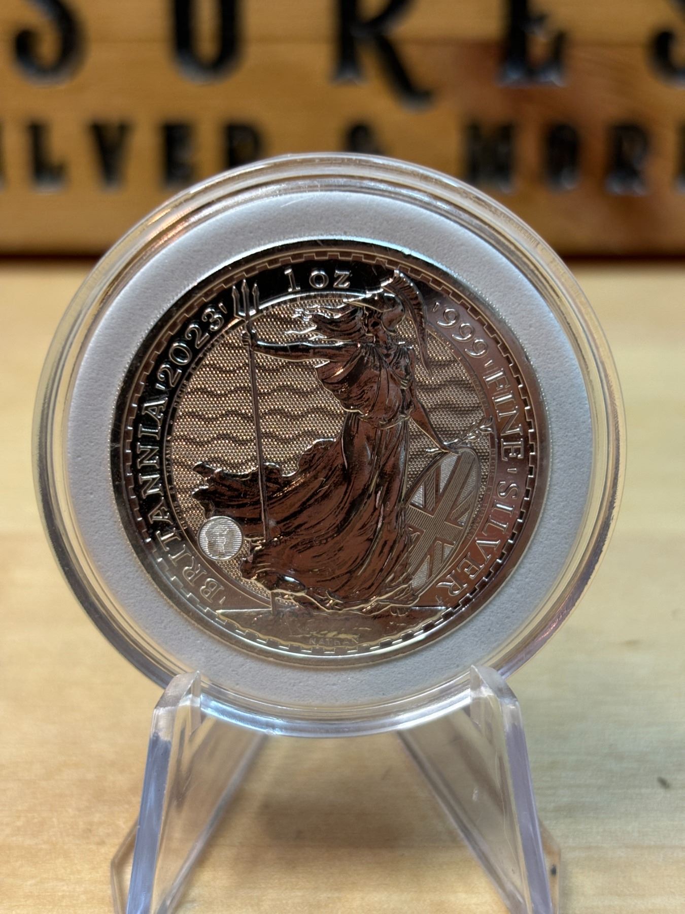The 1 oz Britannia 2023 Silver Coin is part of the popular Britannia series, produced by the Royal Mint. It contains 1 ounce of .999 fine silver and features the iconic image of Britannia, symbolizing strength and resilience. The 2023 edition features an updated design with enhanced security features, such as a new background wave pattern and a holographic foil that changes in the light, making it more difficult to counterfeit. The coin is widely sought after by collectors and investors alike.