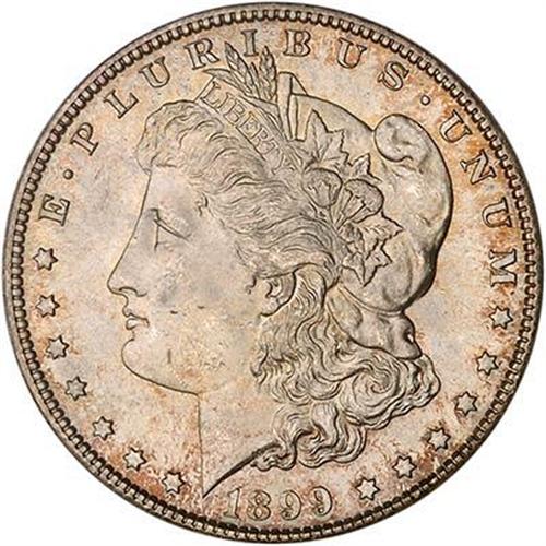 1899-S Morgan Dollar. Meticulous strike on every device, including the key centers. A lustrous Gem that has icy color that shoots out beams of white and, as we said, an outstanding strike. (#7262)