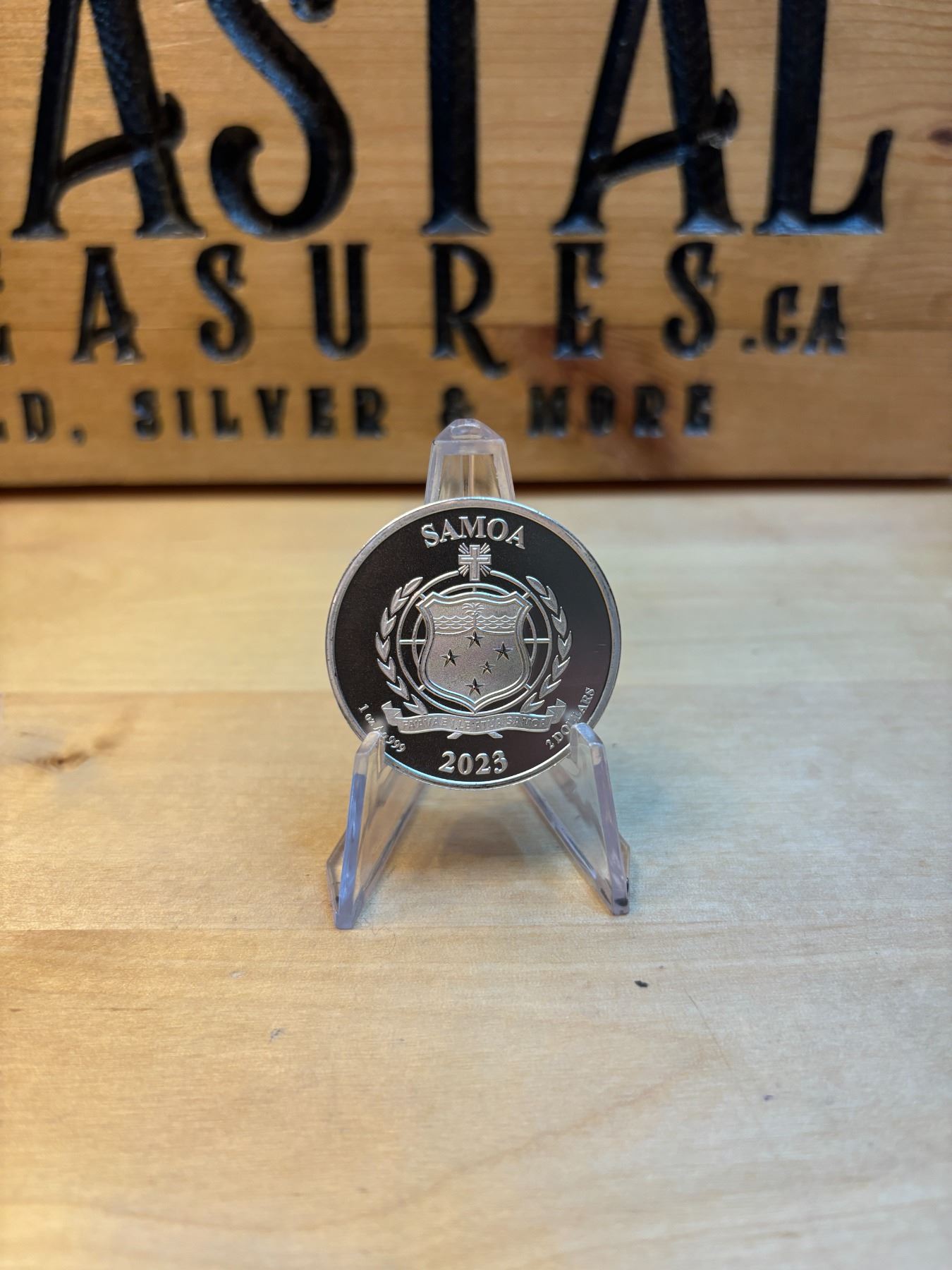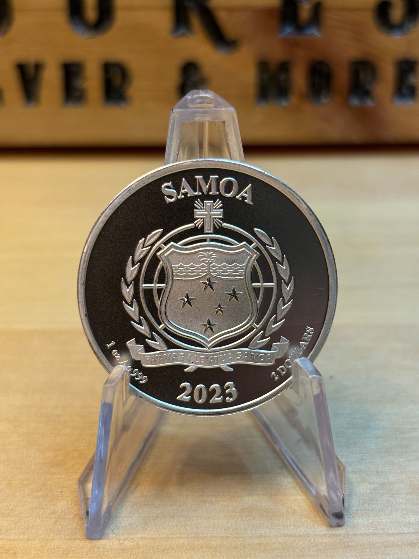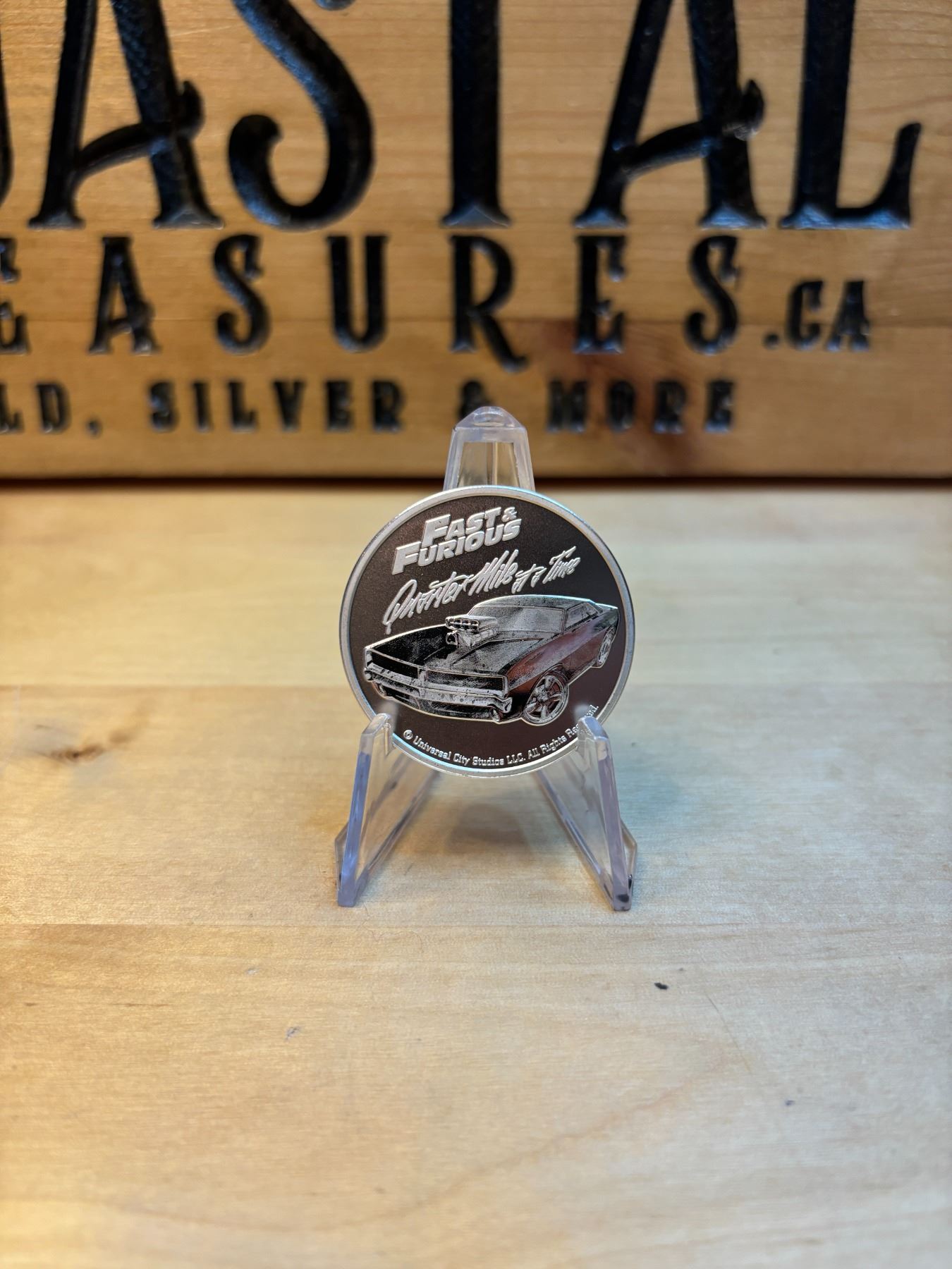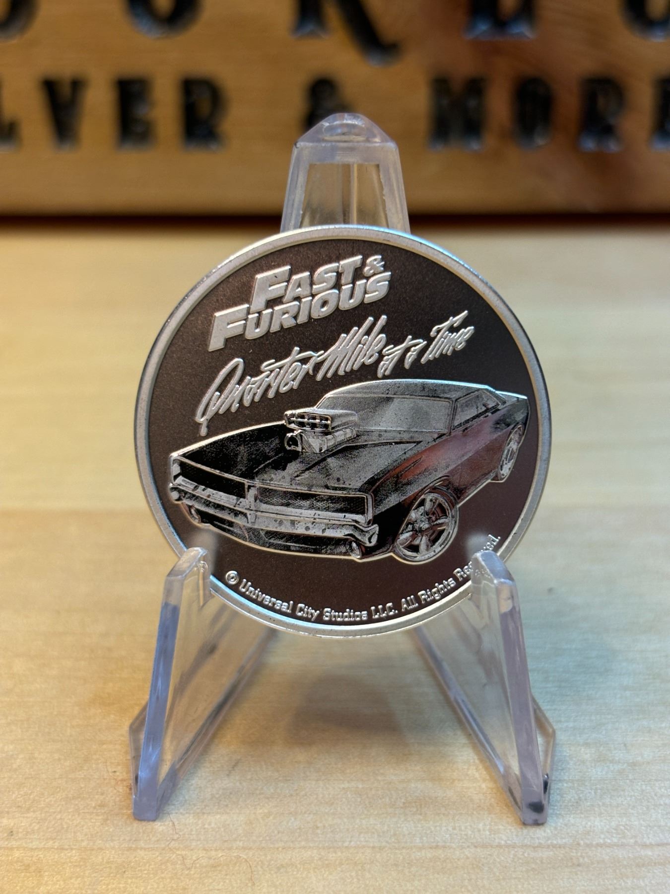 A 1 oz Samoa Fast and Furious Silver Coin is a silver coin that features designs inspired by the Fast & Furious movie franchise. Issued by the government of Samoa, this coin typically contains 1 ounce of 99.9% pure silver. The design likely showcases iconic elements from the Fast and Furious films, such as cars, characters, or action scenes that highlight the series' thrilling nature. As a limited edition collectible, these coins may carry a premium above the silver spot price due to their connection to the popular movie franchise and their appeal to both movie fans and silver coin collectors.