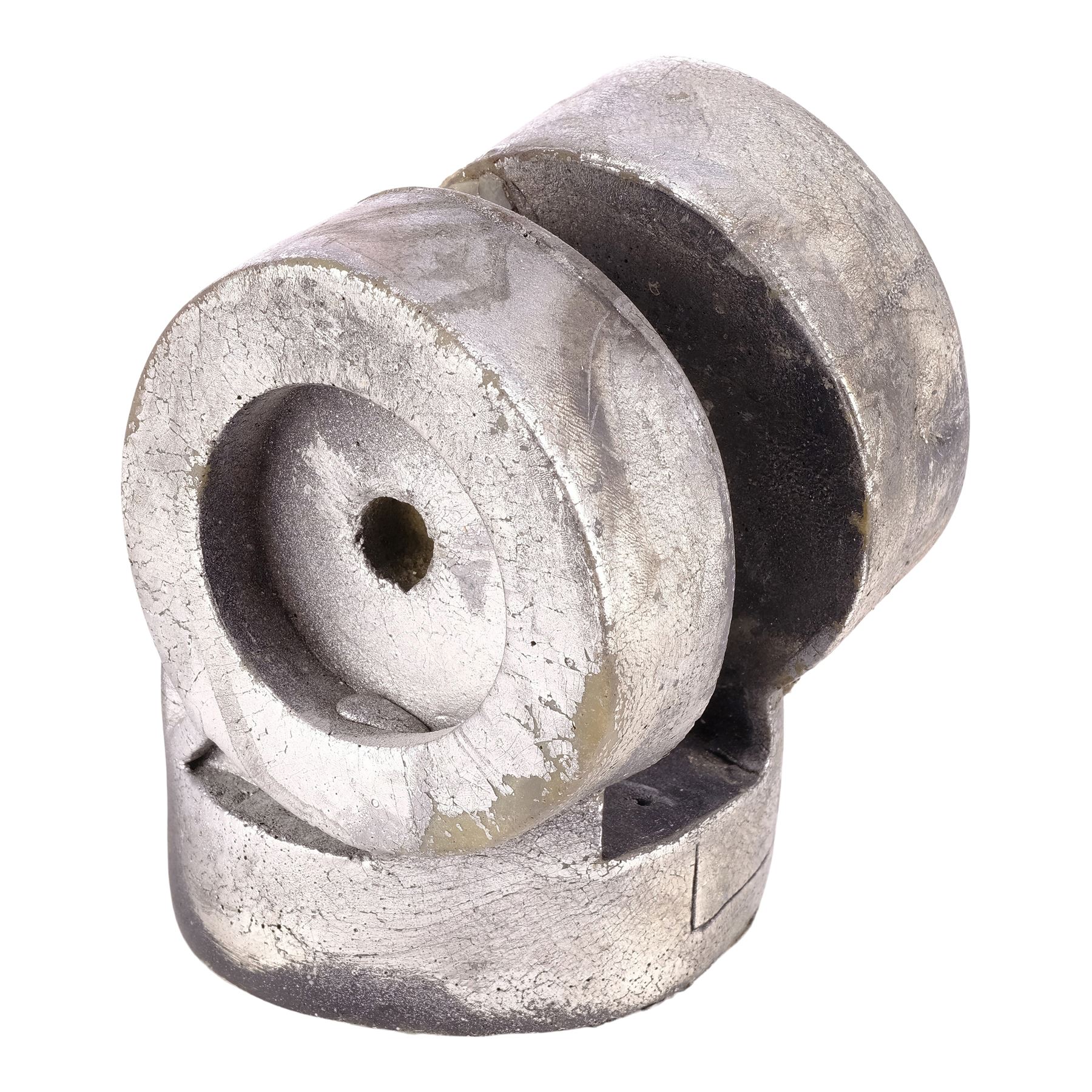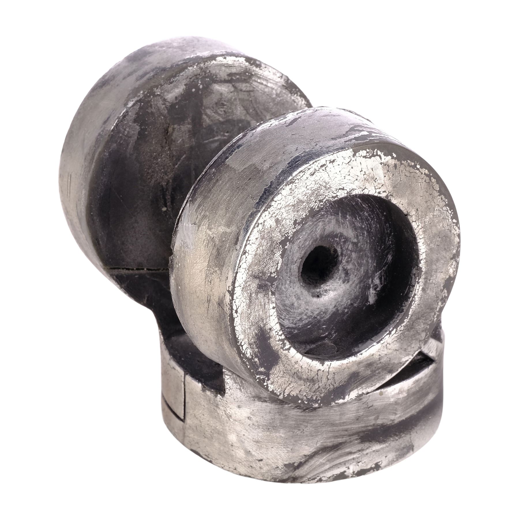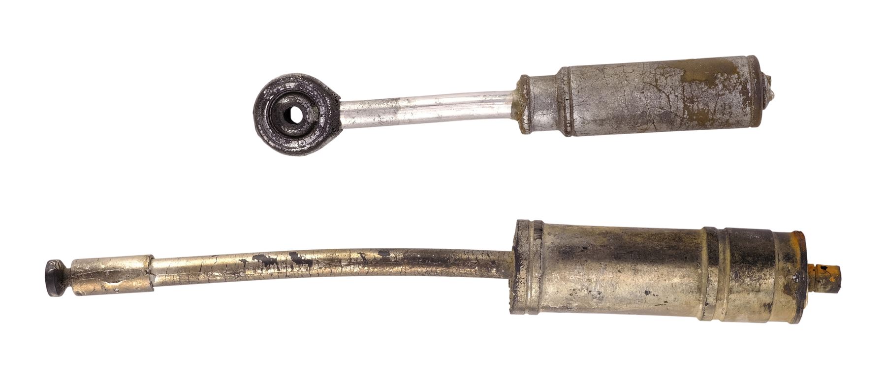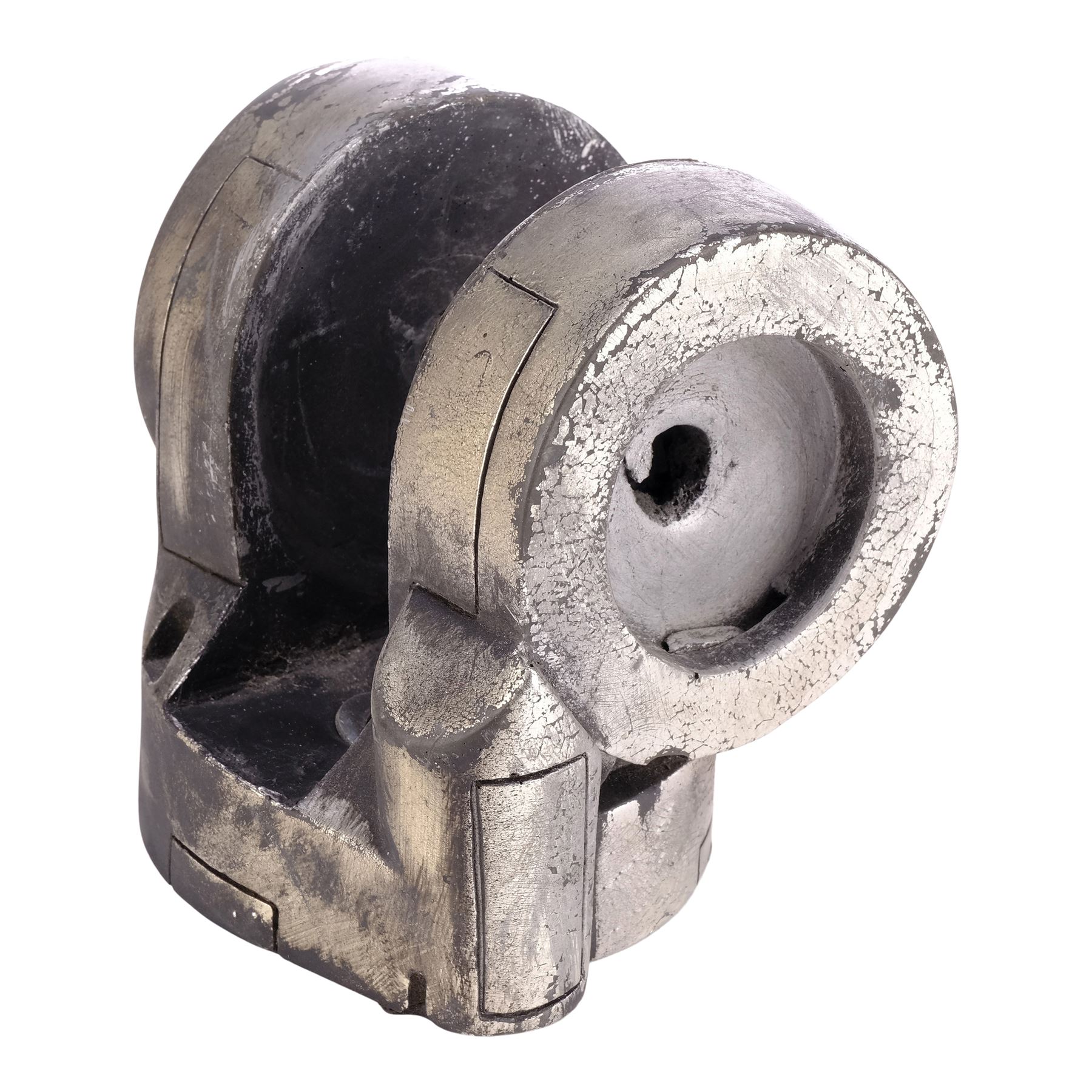 This set consists of a foam rubber and metal hip joint and seven foam rubber endoskeleton hydraulic pumps, joints, and covers all moulded by Stan Winston Studio, painted in matching shades of black with metallic finishes, and intentionally distressed by production to appear battle-worn. The hip joint features a rotating metal bar with a resin interior that moves a flat disc on the reverse. This set exhibits chips, cracks, and seams to the rubber and resin, exposing both in places. Dimensions: (largest) 43.25 cm x 25.5 cm x 20.25 cm (17" x 10" x 8")