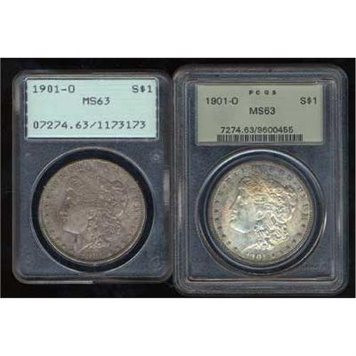 Lot 414 - Lot of Two 1901-O Morgan Dollars both PCGS MS63
