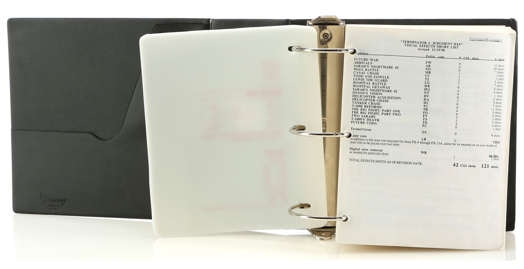 A paperwork archive from James Cameron's Terminator 2: Judgment Day. This lot consists of seven binders of storyboards, a script, various breakdowns, schedules, and other production documents and correspondence from the film.