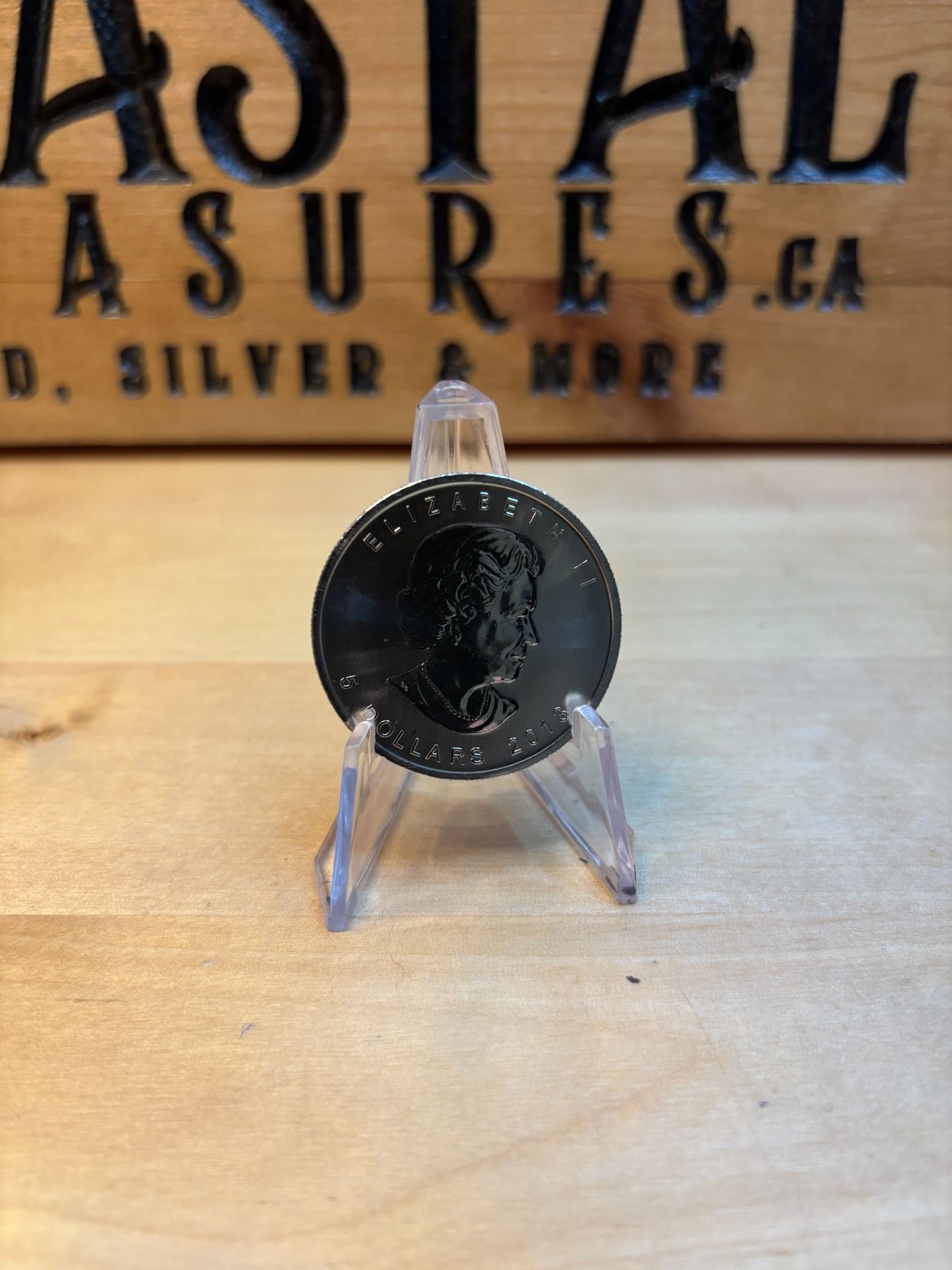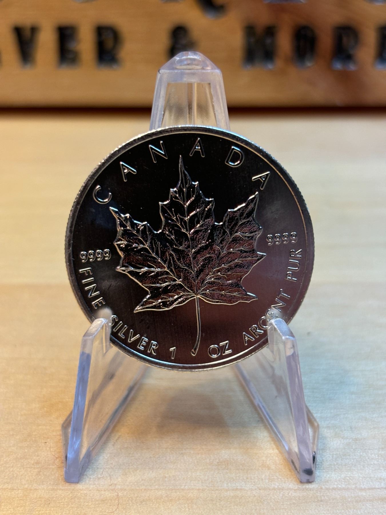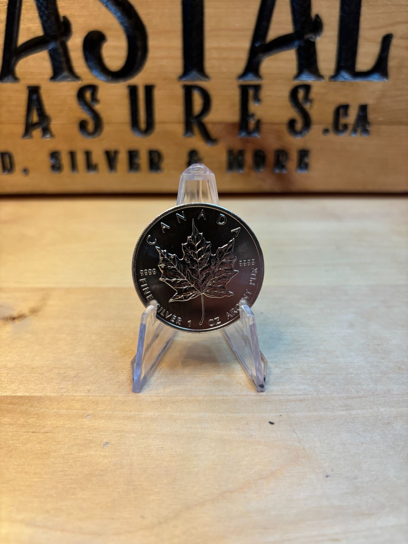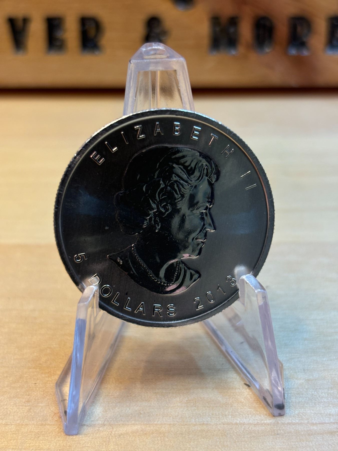 The 1 oz Canadian Maple Leaf Silver Coin 2013 is a popular bullion coin produced by the Royal Canadian Mint. It contains 1 ounce of 99.99% pure silver and features the iconic maple leaf design on the reverse, which is a symbol of Canada. The obverse typically showcases an effigy of Queen Elizabeth II. The 2013 edition may include security features like micro-engravings or a radial line pattern to enhance its anti-counterfeiting measures. Its value is primarily determined by the price of silver, but it may carry a premium due to its collectability, limited mintage, and the Royal Canadian Mint's reputation for quality.