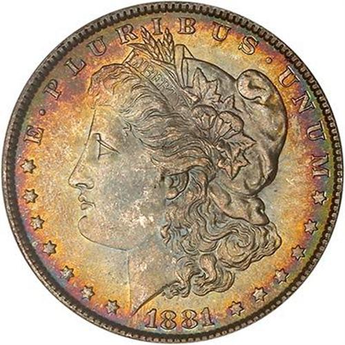 1881 Morgan Dollar. A pleasing gem with nicely toned surfaces. The 1881 Philly mint date is much scarcer, grade for grade, than the S-mint issue; watch the price action on this handsome one. (#7124)