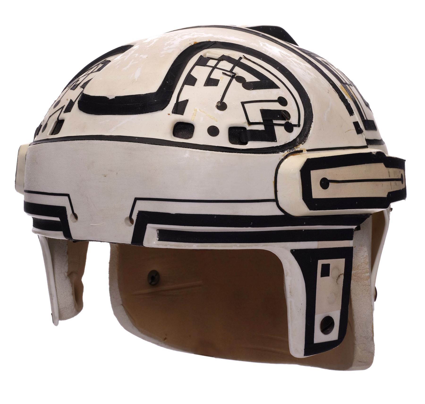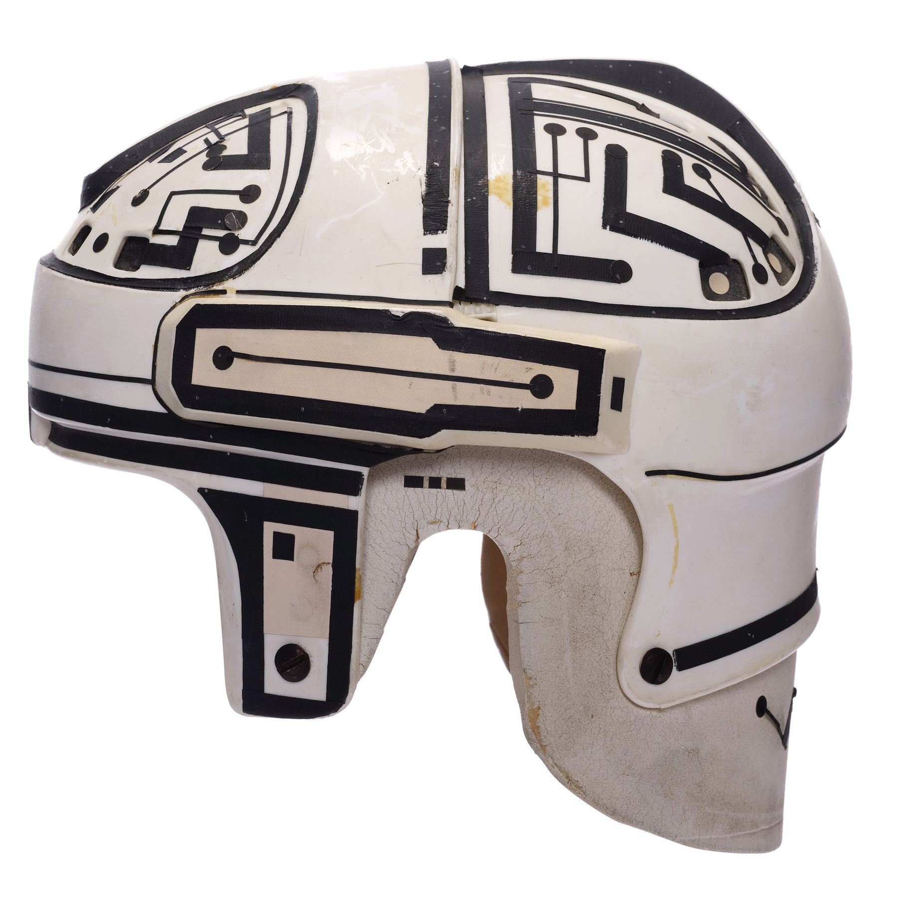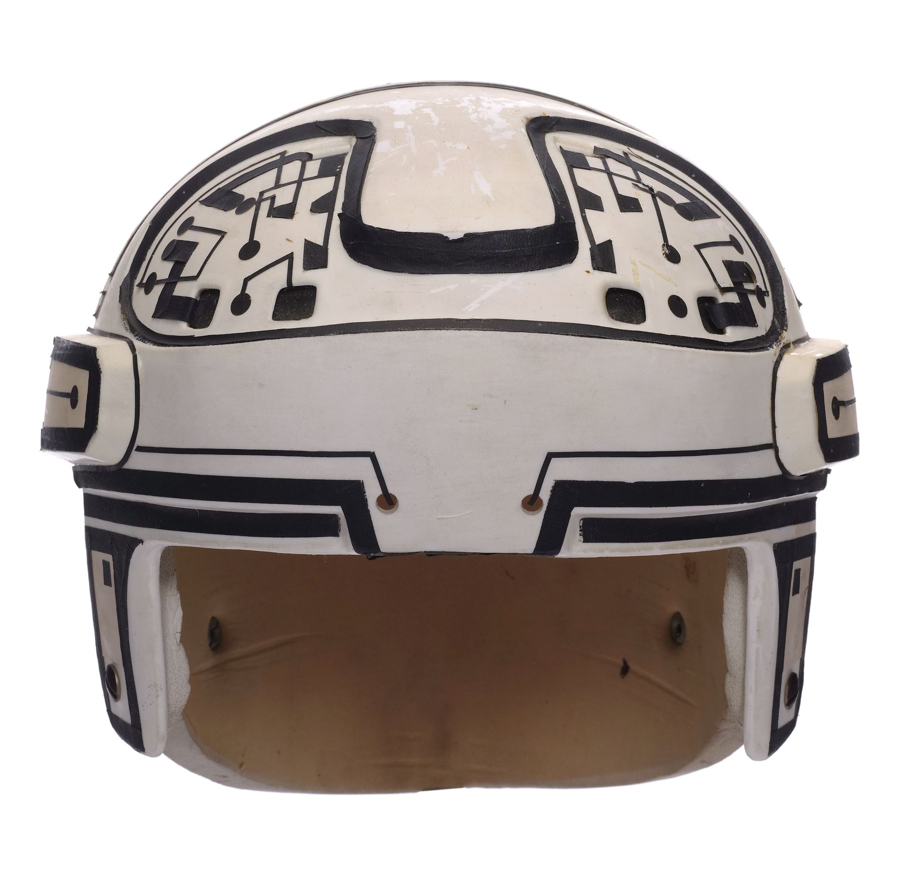 A program helmet from Steven Lisberger's Tron. Programs, the user-built electronic beings that inhabited the digital world, wore circuitry-lined outfits, including helmets, throughout the film.