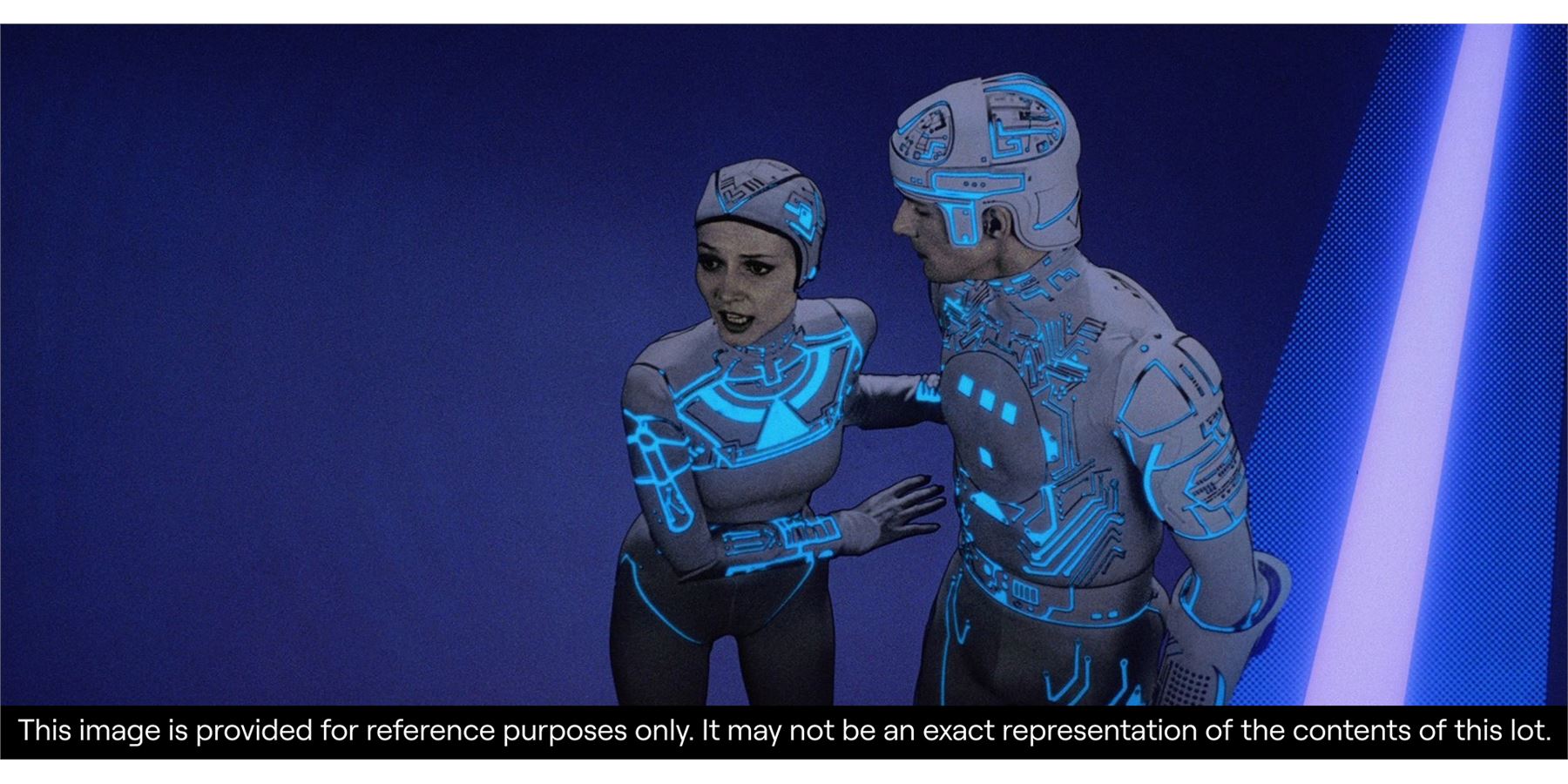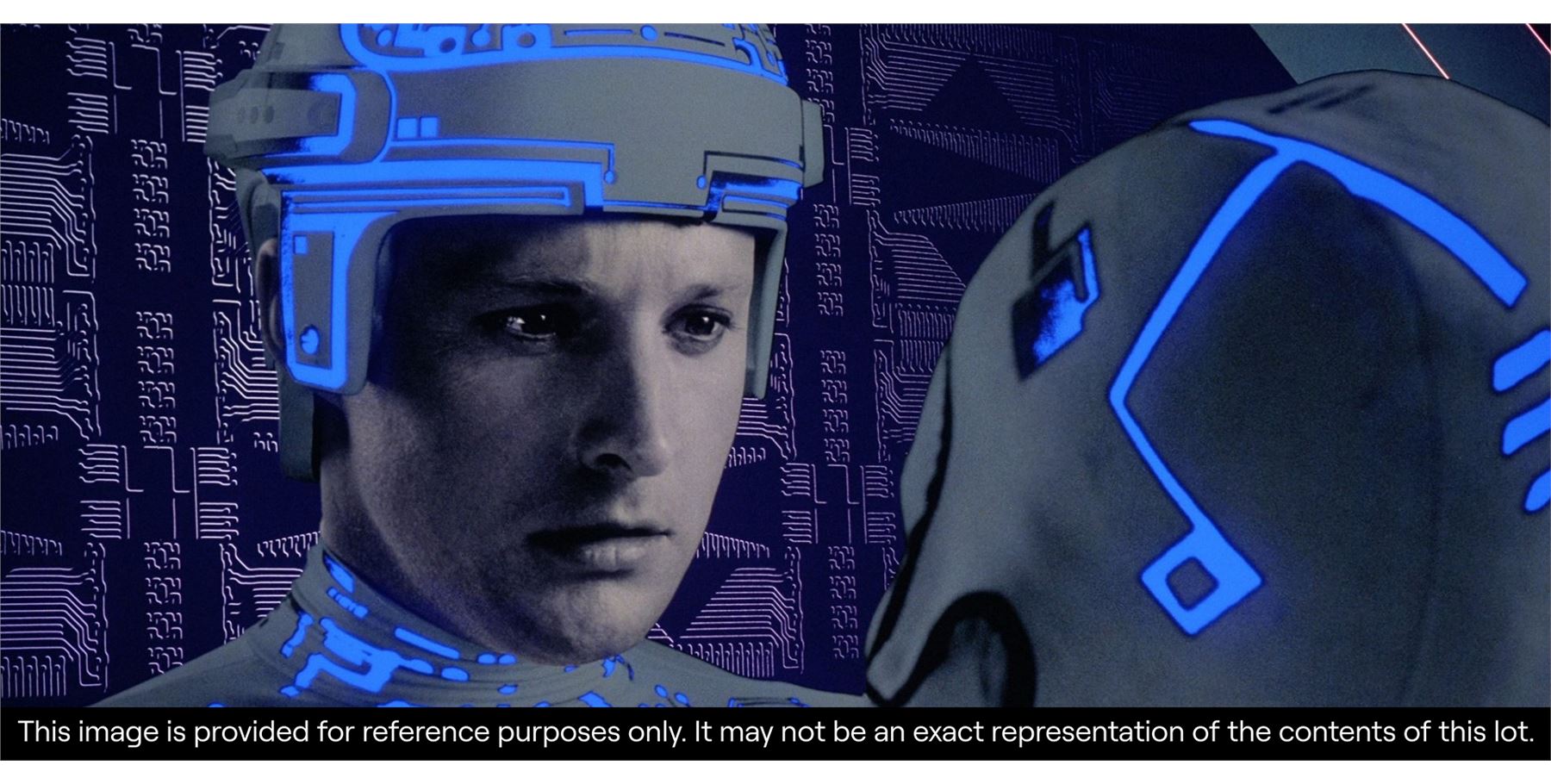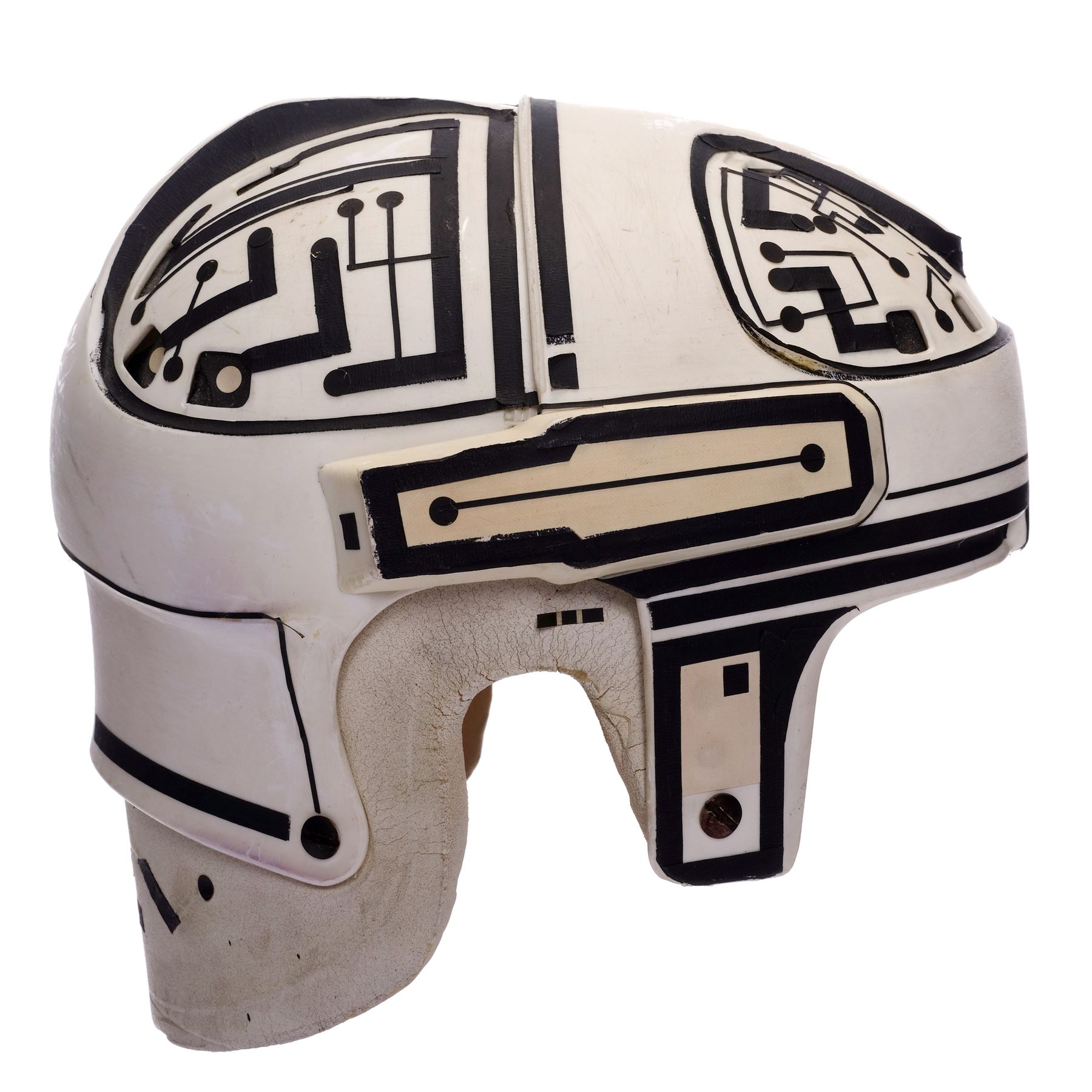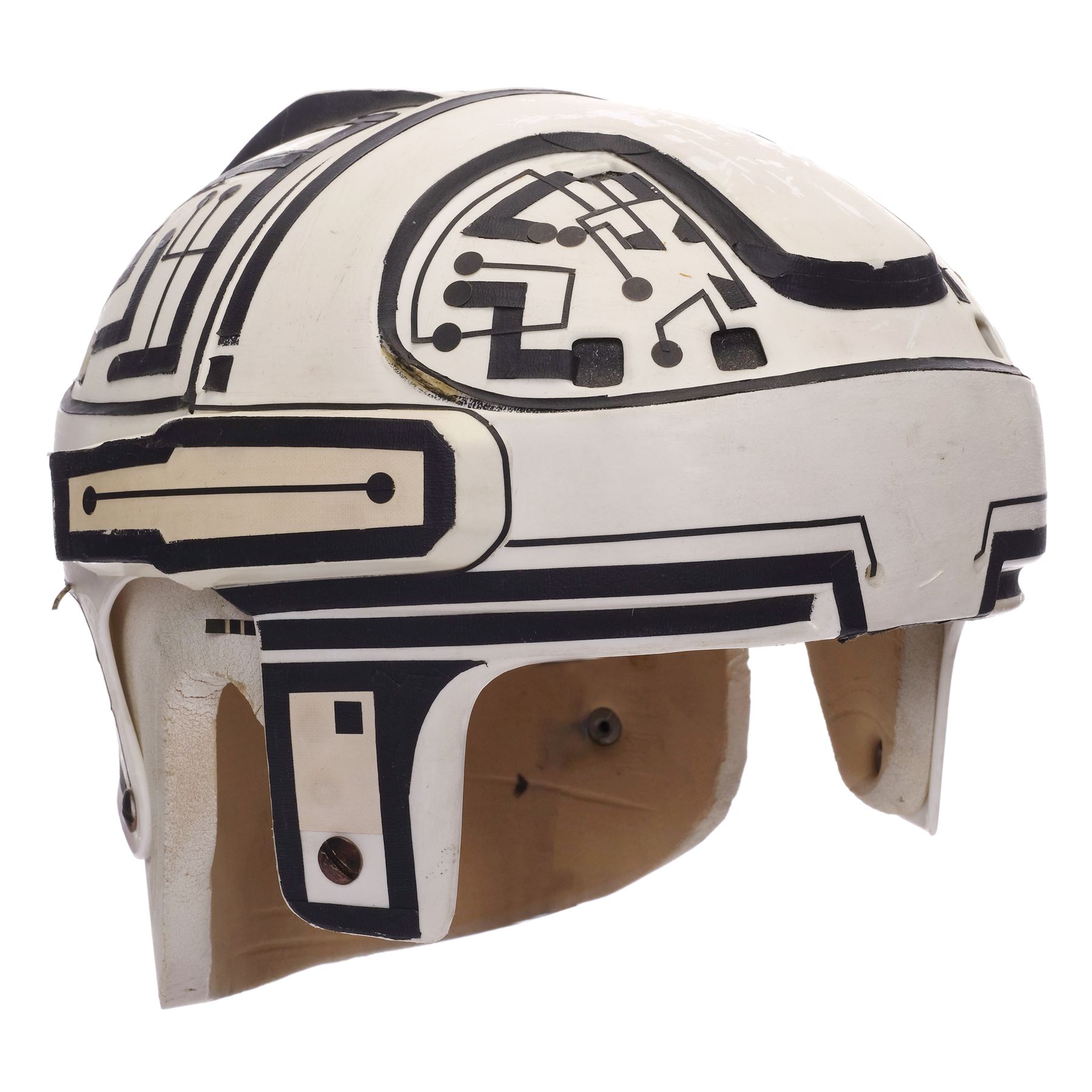 A program helmet from Steven Lisberger's Tron. Programs, the user-built electronic beings that inhabited the digital world, wore circuitry-lined outfits, including helmets, throughout the film.