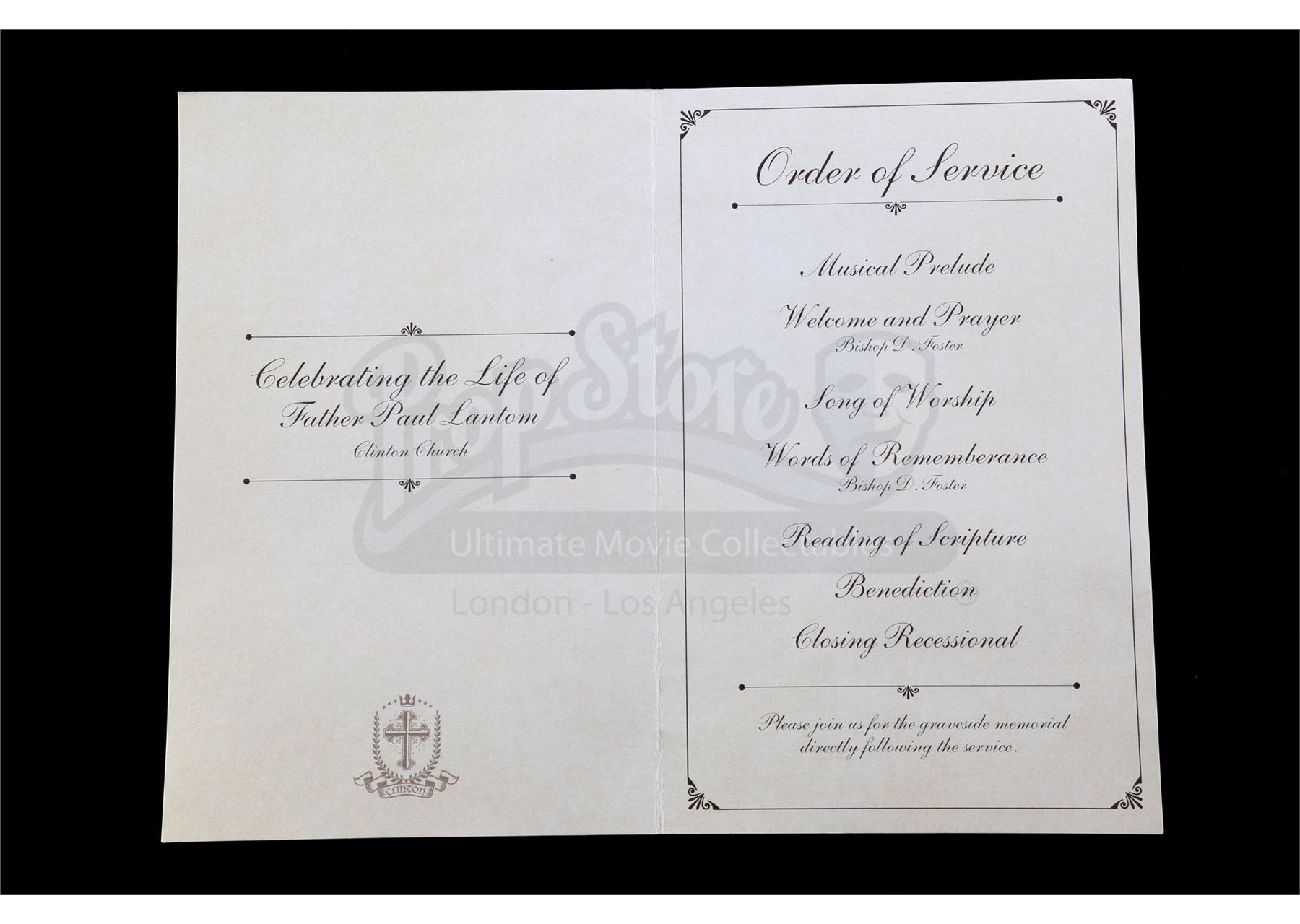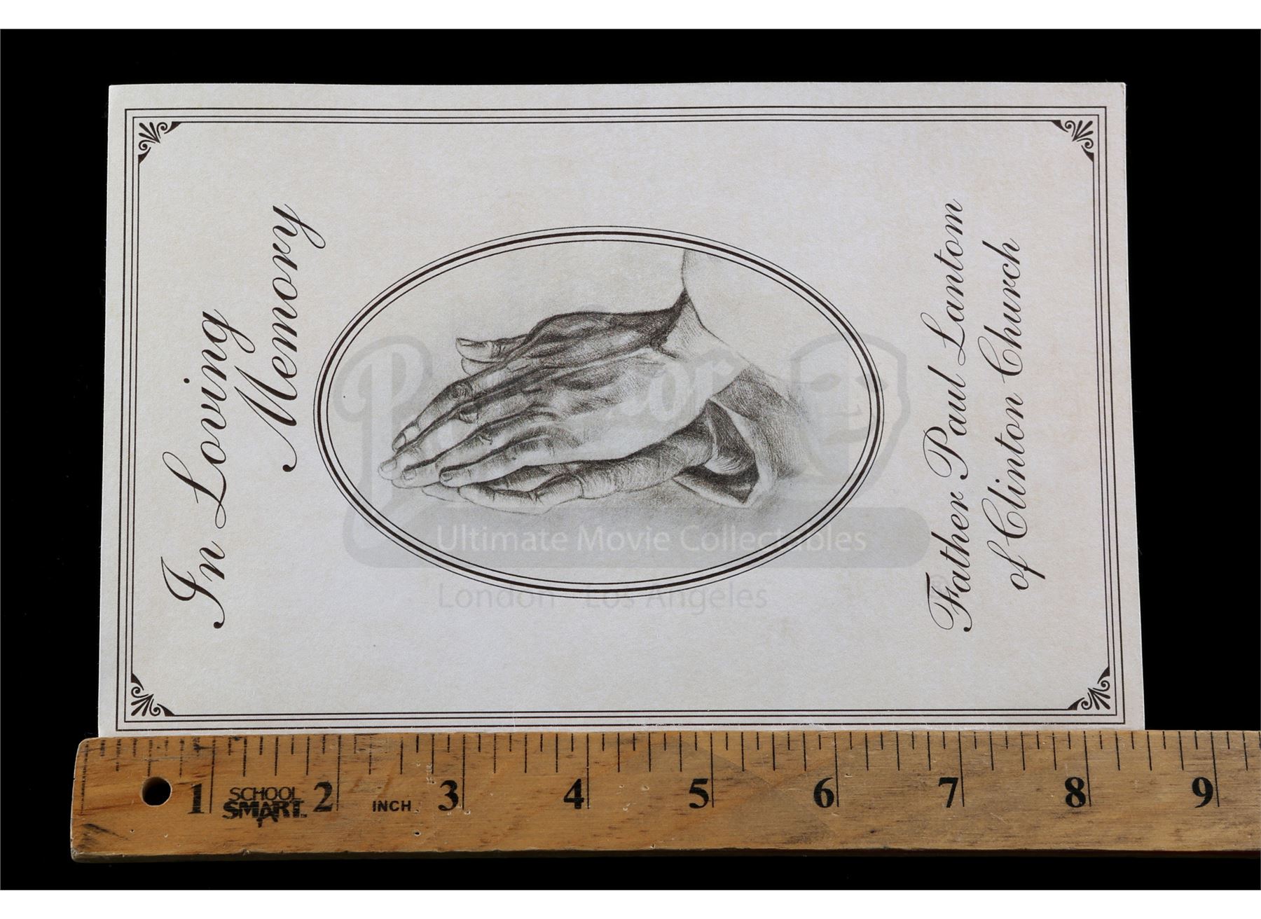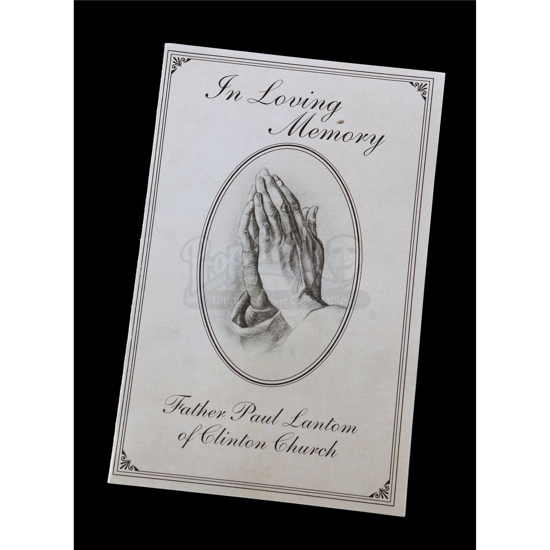 Program for Father Paul Lantom’s funeral from the episode ‘A New Napkin’ (313) of Marvel's Daredevil. In the episode, Matt Murdock speaks at Lantom’s funeral after he sacrifices himself to save Karen Page. This high-quality printed paper program is in good overall condition with some wear from production.